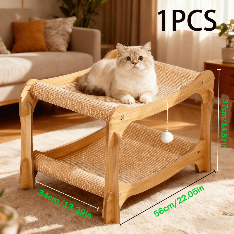 هل تبحث عن الملاذ المثالي لرفيقك المدلل؟ نقدم لك سرير السيزال المزدوج الفاخر للقطط، المصمم خصيصاً لتوفير أقصى درجات الراحة والأناقة لقطتك المحبوبة على مدار العام! هذا السرير العملي والأنيق هو الإضافة المثالية لأي منزل، حيث يجمع بين الجمال الطبيعي والخامات المتينة لضمان سعادة وهدوء قطتك. مع تصميمه الفريد ذي الطبقتين، والمصنوع من السيزال فاتح اللون بلمساته الطبيعية الرقيقة، سيندمج بسلاسة مع ديكور منزلك ويصبح المكان المفضل لقطتك للاسترخاء واللعب.