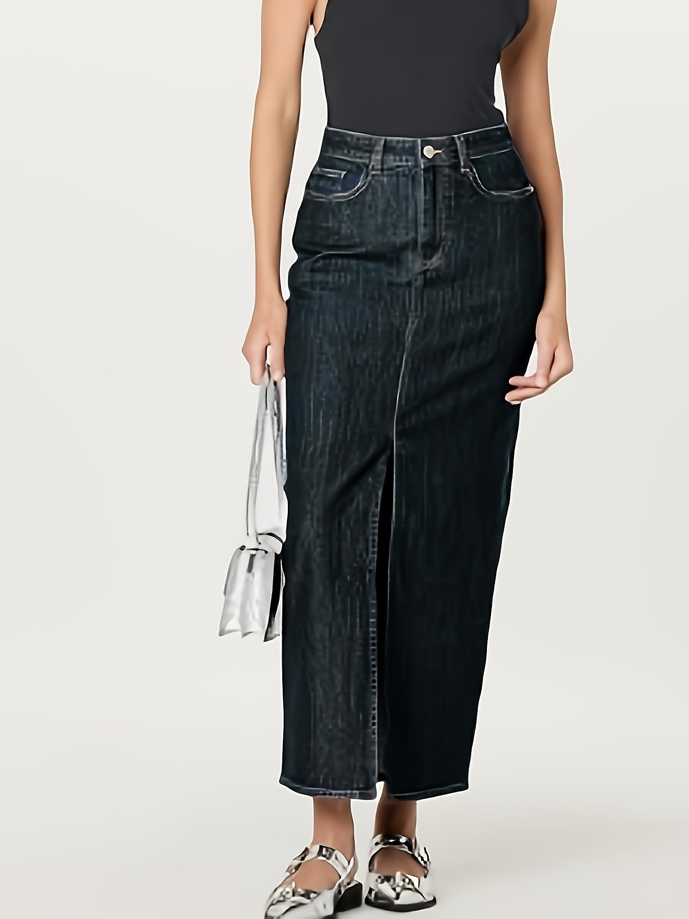 - تصميم A-Line ماكسي أنيق: بقصة انسيابية وطول يصل إلى الكاحل، تمنحكِ هذه التنورة مظهرًا رشيقًا ومُفعمًا بالأنوثة، مع حافة واسعة تضفي لمسة درامية راقية تتماشى مع صيحات الموضة.