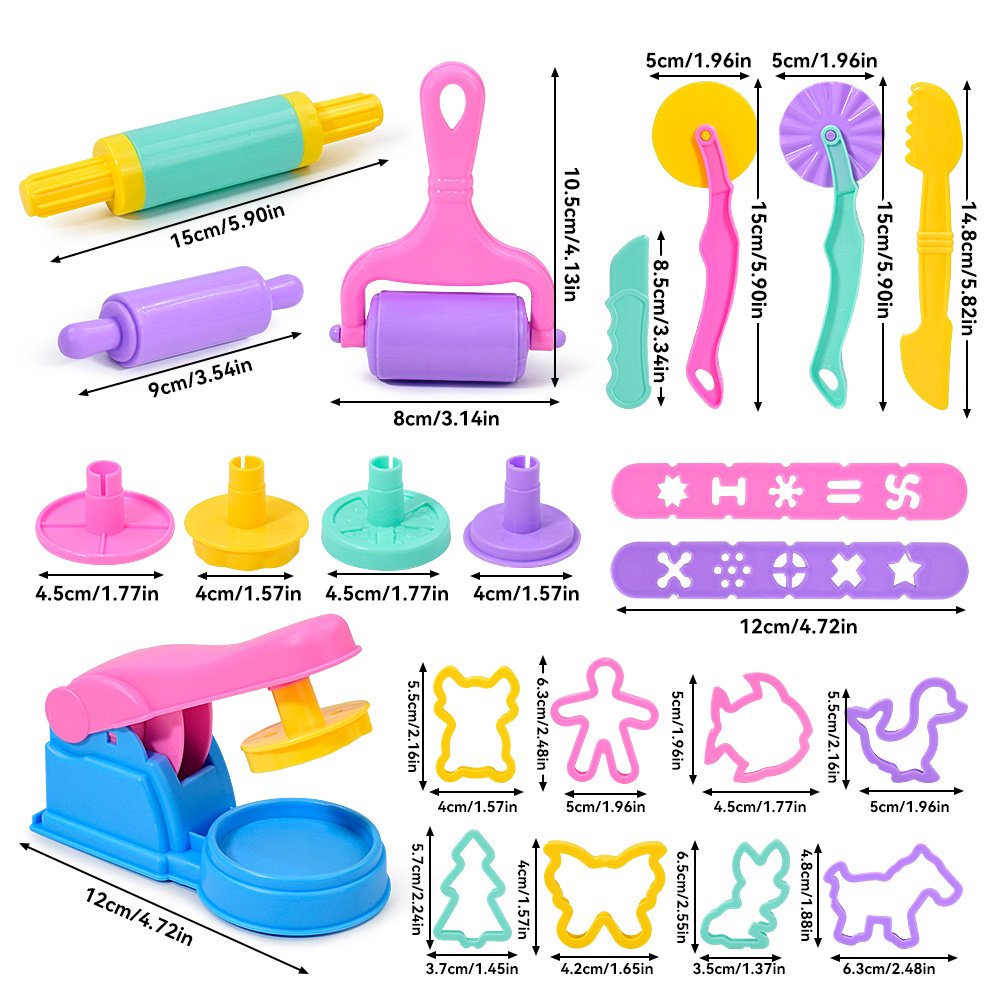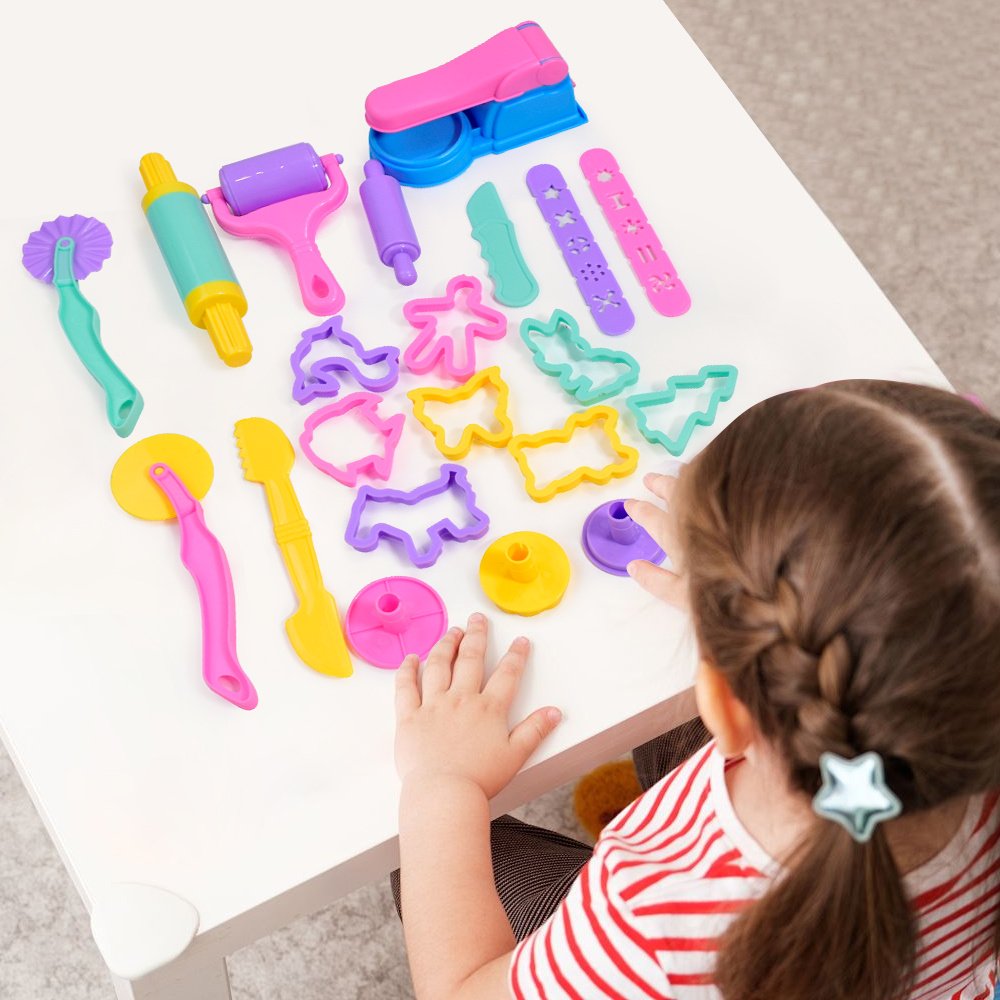 • أدوات وقوالب مبتكرة: تتضمن المجموعة أدوات تشكيل متنوعة وقوالب ثلاثية الأبعاد مبتكرة، بالإضافة إلى قوالب ألغاز تعليمية ومواد بلاستيكية مرنة، لتوفير أقصى درجات الإبداع والمتعة وتمكين طفلك من بناء أي شكل يتخيله.