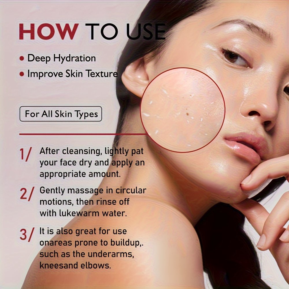 - تأثير مضاعف: سيروم ومقشر لطيف: يوفر عناية مزدوجة، فهو يعمل كسيروم مغذٍ ومقشر لطيف يزيل الشوائب ويجدد خلايا البشرة، لتصبح ناعمة كالحرير ومشرقة.