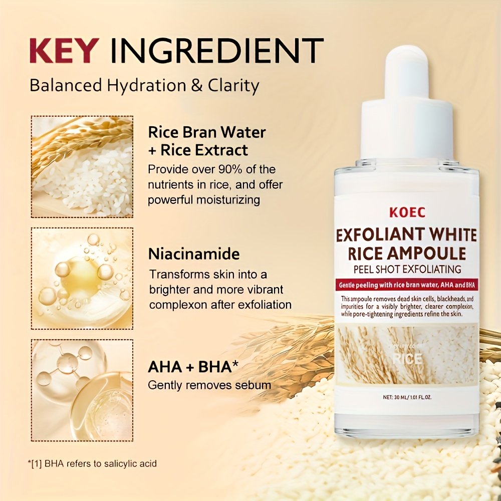 هل تحلمين ببشرة تتألق بالنضارة والإشراق؟ اكتشفي سر الطبيعة الآسيوي القديم في زجاجة واحدة! نقدم لكِ سيروم وخلاصة الأرز من KOEC، التركيبة الثورية التي تجمع بين قوة الأرز النقي ومكونات العناية المتطورة لتهيئة بشرتك نحو الكمال.
