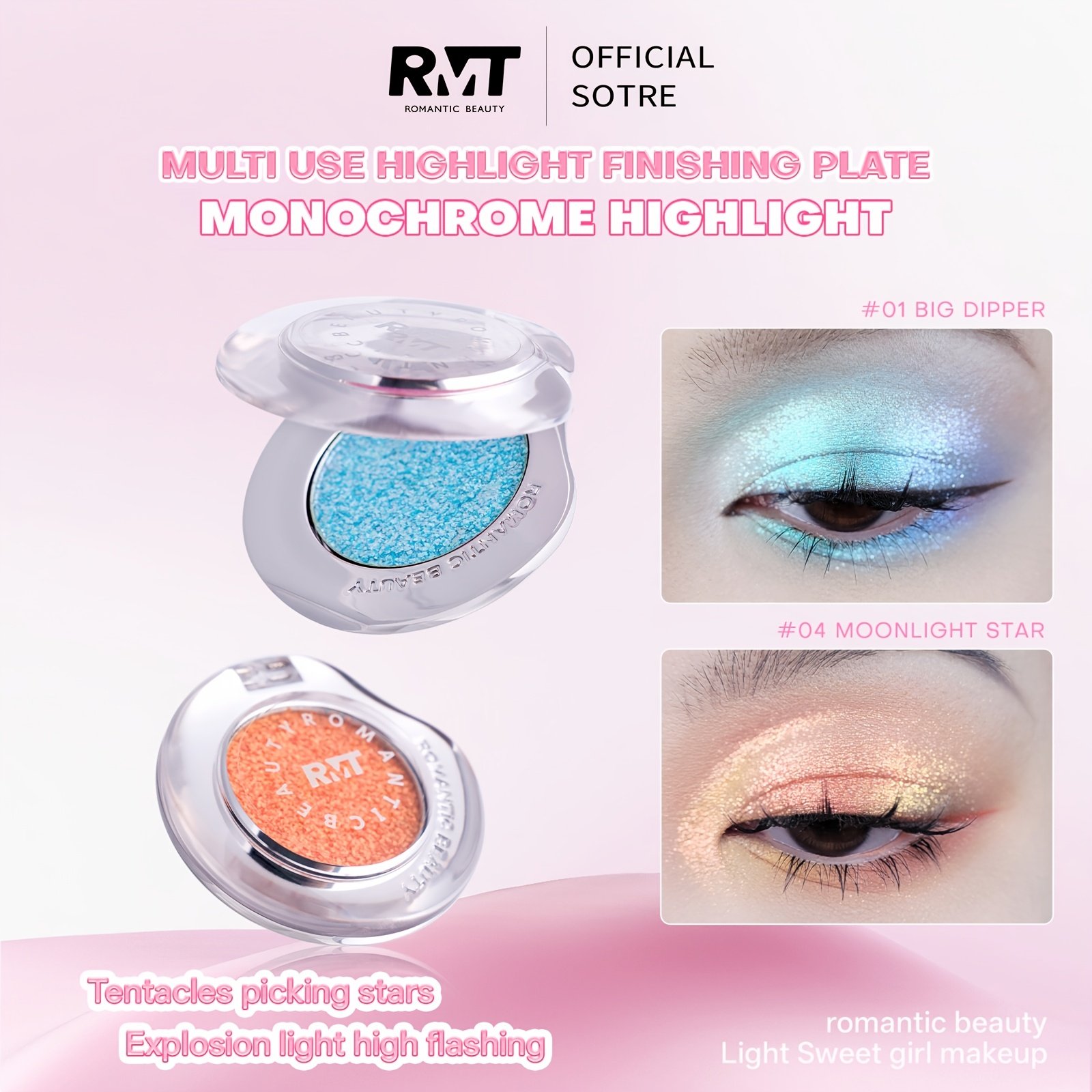هل أنتِ مستعدة لتحويل نظرة عينيك إلى تحفة فنية تأسر القلوب؟ نقدم لكِ إضاءة وظلال عيون Romantic Beauty الساحرة، التي تجسد جمال المجرات وتمنحكِ بريقًا لا مثيل له. دعي عينيكِ تتألقان بوهج النجوم وتكشفان عن سحر خفي مع كل رمشة.