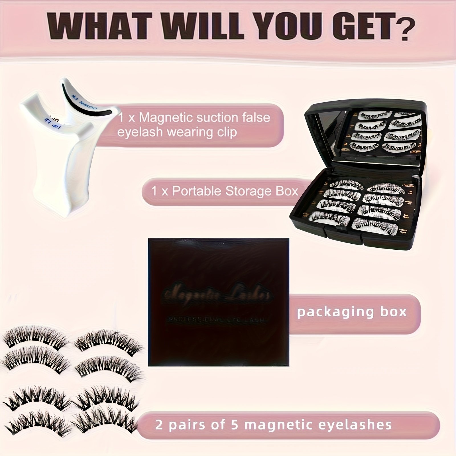 - طقم متكامل لجمال فوري: يأتيك الطقم بكل ما تحتاجينه لإطلالة مثالية: رموش مغناطيسية عالية الجودة، أداة تطبيق دقيقة، وفرشاة خاصة لسهولة التركيب والإزالة بلمسة واحدة دون الحاجة للصمغ.