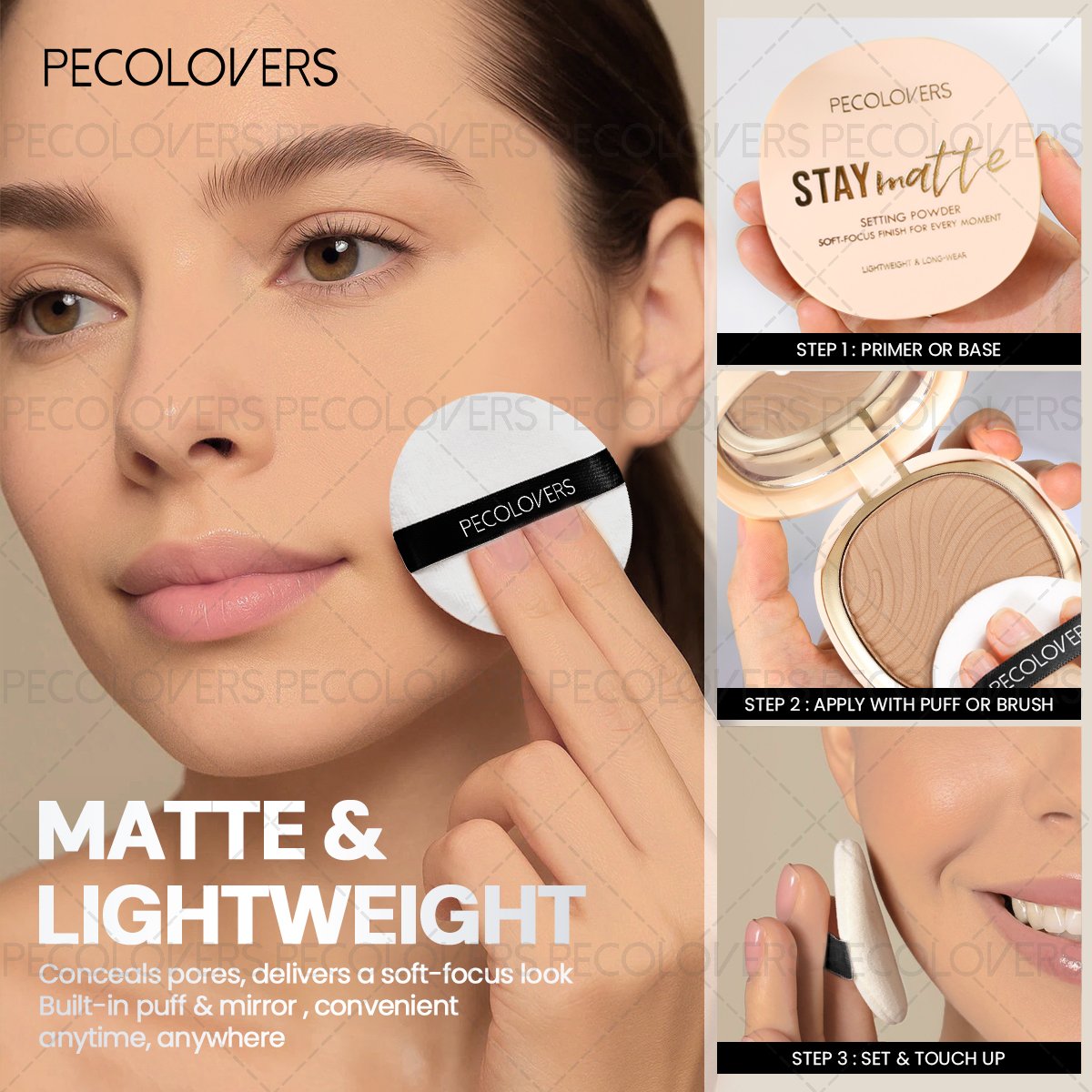 - سهولة الاستخدام والتطبيق: بودرة مضغوطة مدمجة وعملية، يسهل حملها واستخدامها أينما كنتِ. يمكنكِ تطبيقها بسرعة وسهولة في أي وقت ومكان لتجديد إطلالتكِ بلمسة واحدة سحرية.