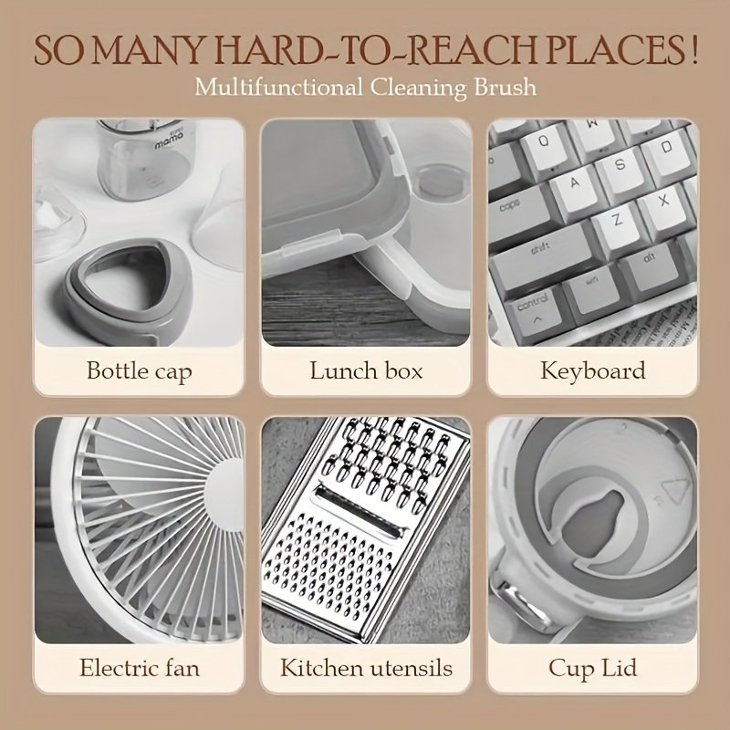 - 4 في 1: رفيقك الشامل للنظافة: تجمع هذه الأداة الذكية بين فرشاة دقيقة لأغطية الأكواب، فرشاة ناعمة لتنظيف لوحات المفاتيح الحساسة، ومنظف فعال للفجوات والزوايا الضيقة. وداعًا لتعدد الأدوات ومرحبًا بالفعالية القصوى!