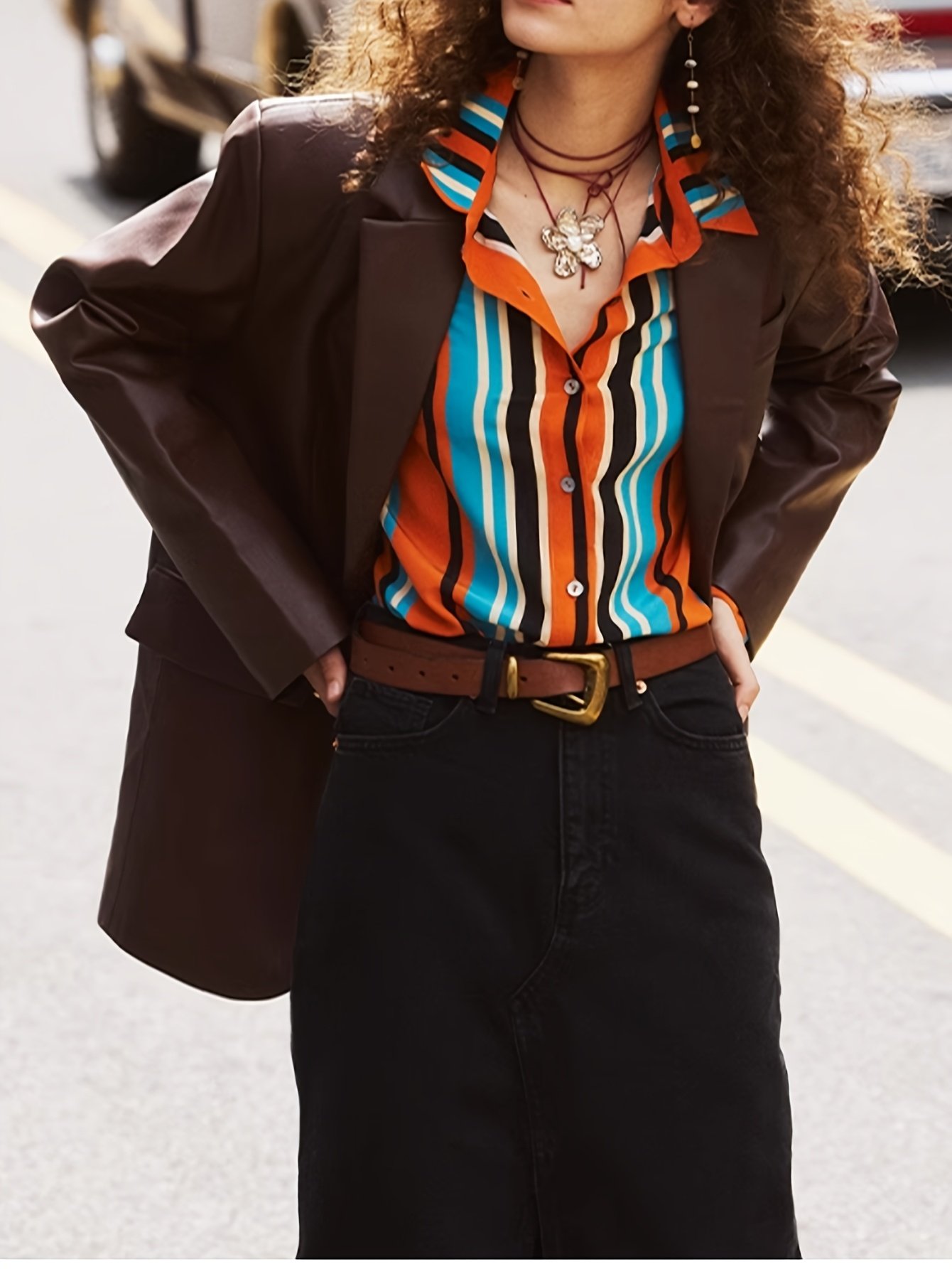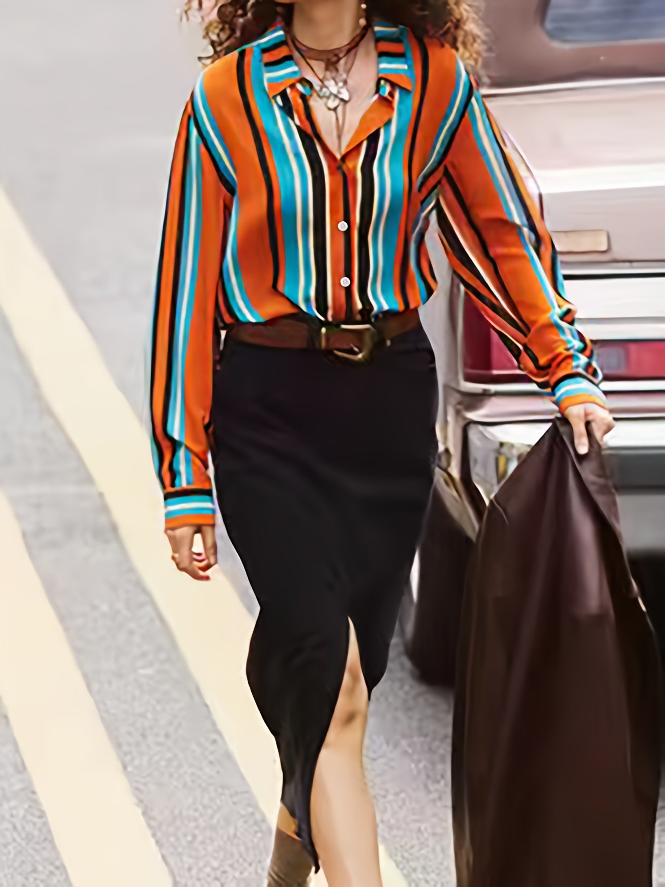 - تصميم هندسي فريد: يتميز بنقوش هندسية عصرية مطبوعة بطريقة عشوائية تضفي لمسة فنية وجريئة، تجعلكِ تبرزين بأسلوبكِ الخاص والمميز في أي حشد.