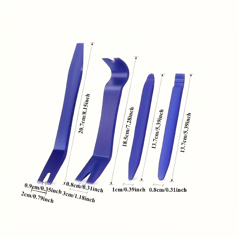 - تصميم احترافي متعدد الاستخدامات: تشتمل المجموعة على أشكال وأحجام متنوعة من أدوات الرفع والفصل، مما يجعلها مثالية لفك ألواح الأبواب، المشابك، تركيبات الصوت، وأي مكون داخلي آخر بسهولة ودقة متناهية.