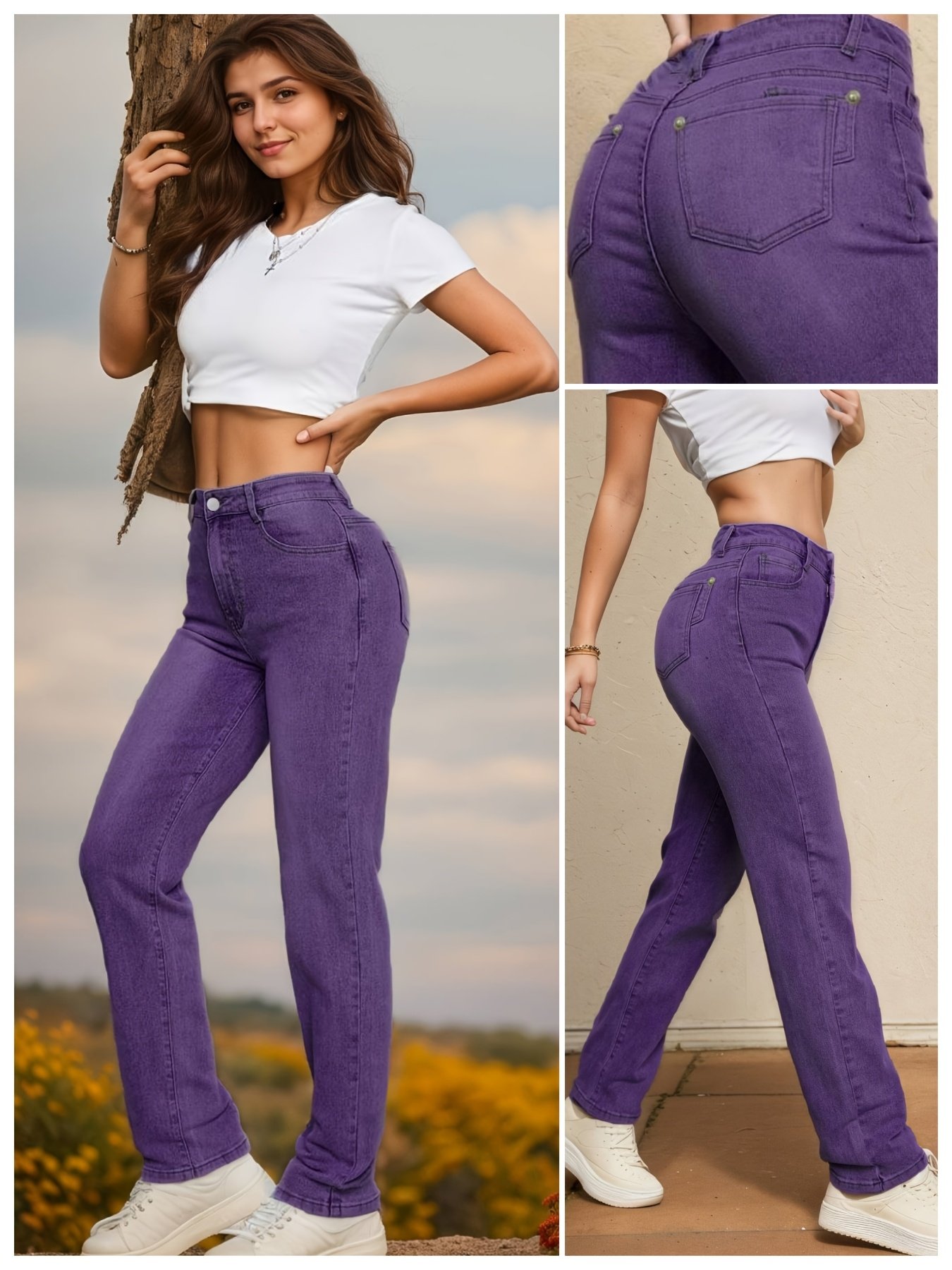 - خامة دينم مرنة وعالية الجودة: مصنوع من مزيج مثالي (70% قطن، 28% بوليستر، 2% إيلاستين) يضمن متانة فائقة ومرونة عالية، ليتكيف مع حركتكِ ويوفر راحة تدوم طويلاً دون قيود.