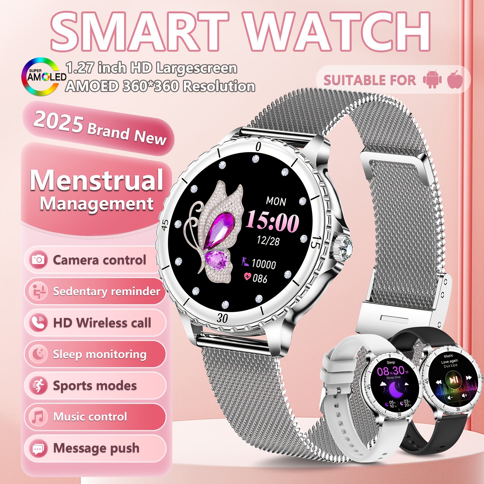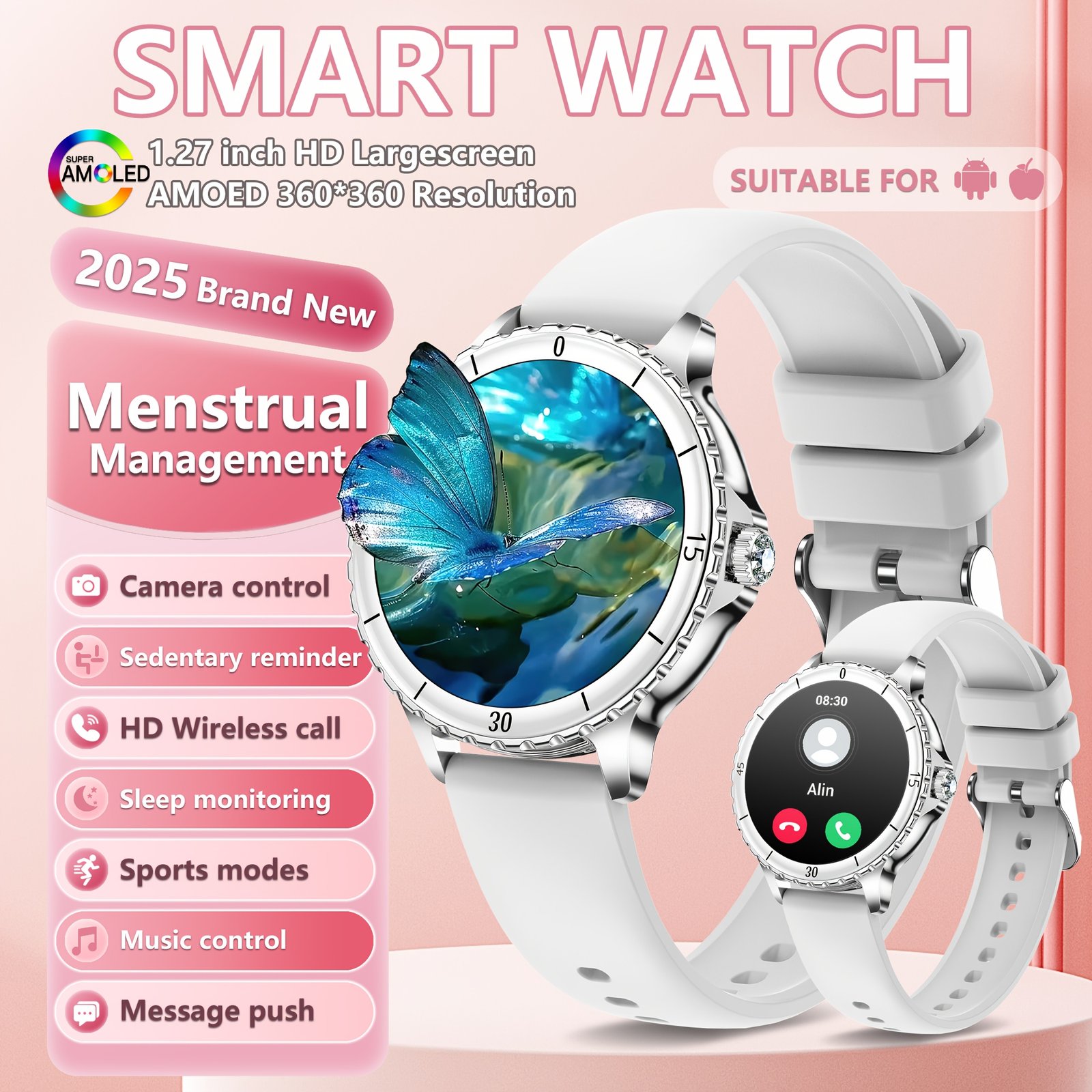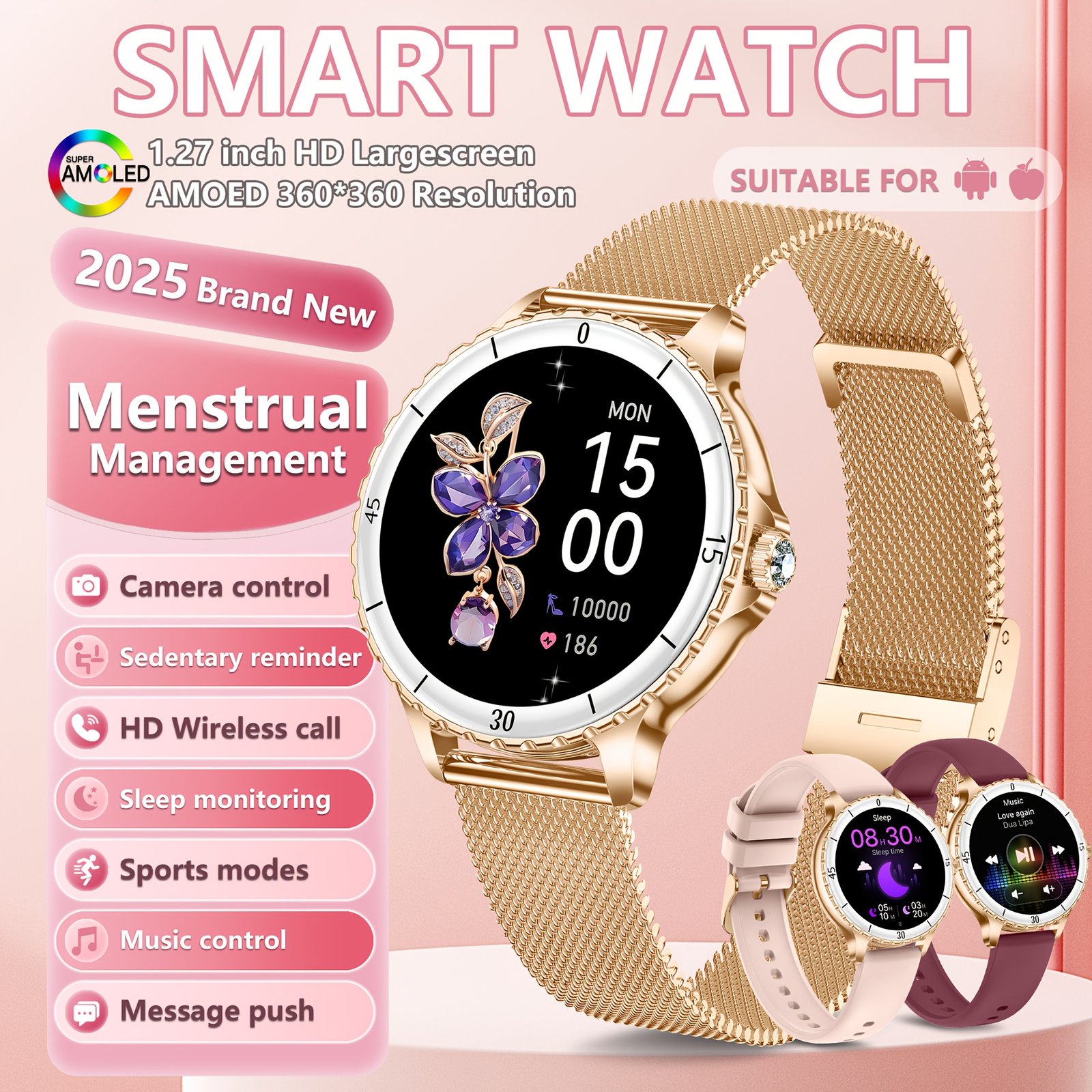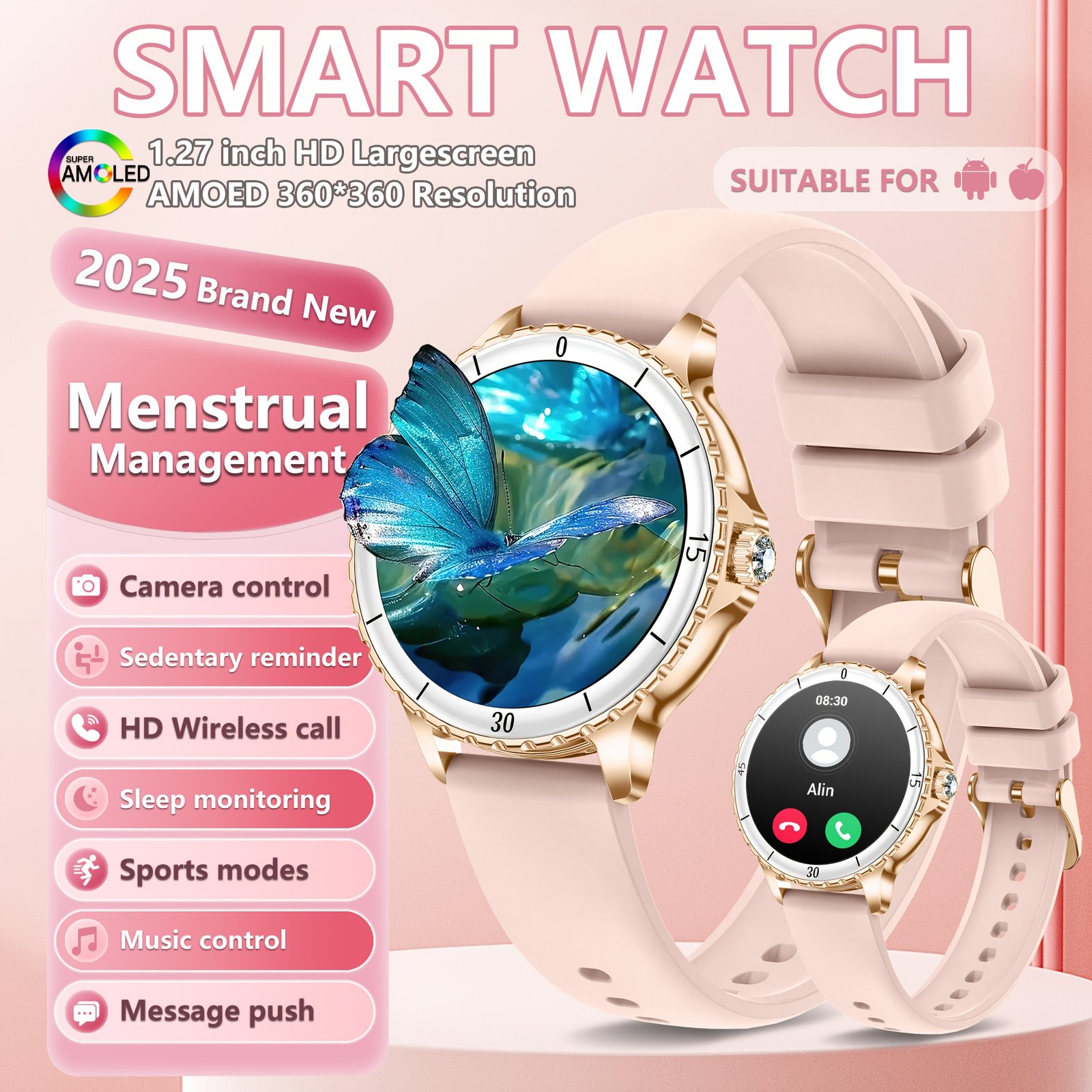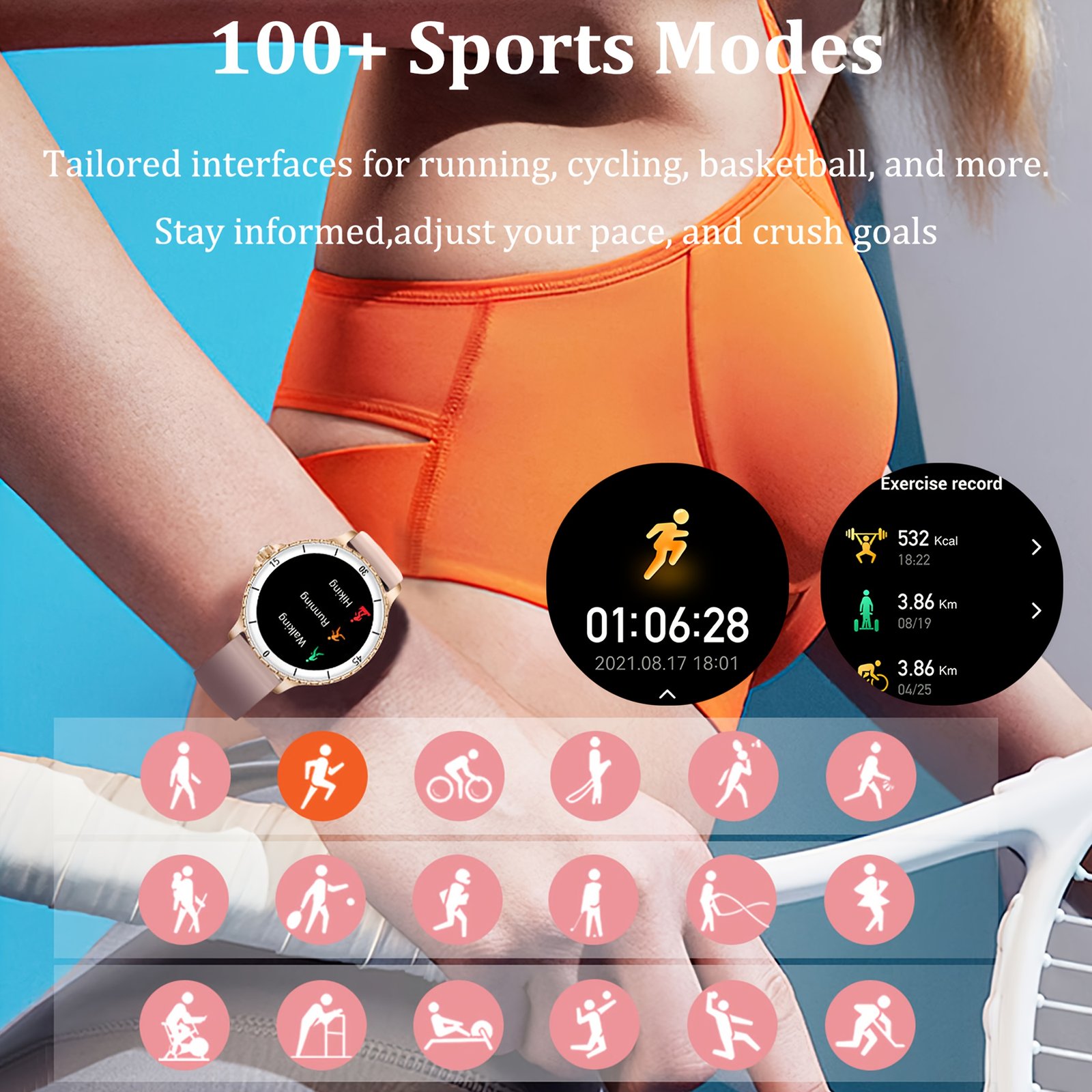 - شاشة AMOLED نابضة بالحياة: استمتعي بتجربة بصرية مذهلة مع شاشة لمس كاملة فائقة الوضوح بحجم 1.27 بوصة، ودقة 360×360 بكسل ونسبة شاشة مدهشة تصل إلى 90%، لتقديم تفاصيل لا مثيل لها وواجهة استخدام سلسة.