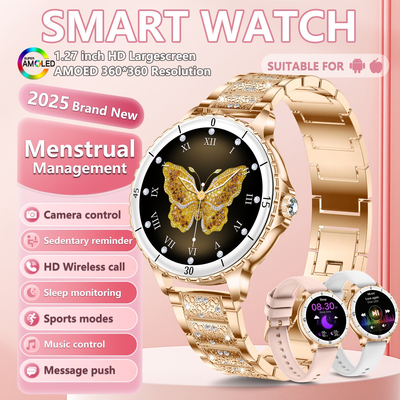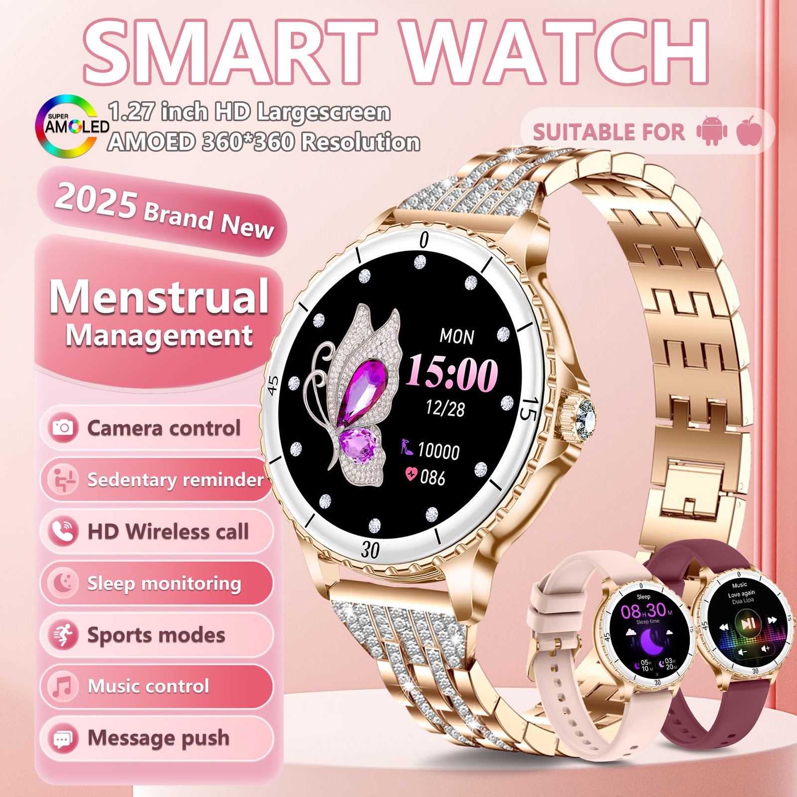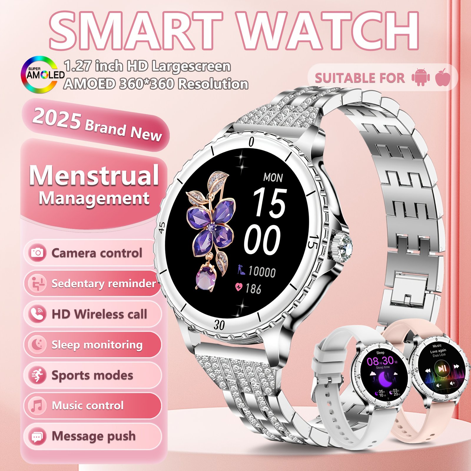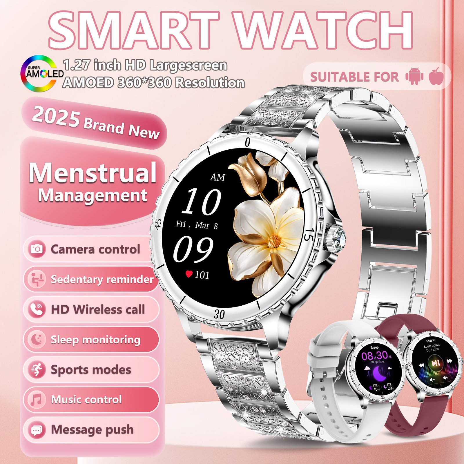 - شاشة AMOLED نابضة بالحياة: استمتعي بتجربة بصرية مذهلة مع شاشة لمس كاملة فائقة الوضوح بحجم 1.27 بوصة، ودقة 360×360 بكسل ونسبة شاشة مدهشة تصل إلى 90%، لتقديم تفاصيل لا مثيل لها وواجهة استخدام سلسة.