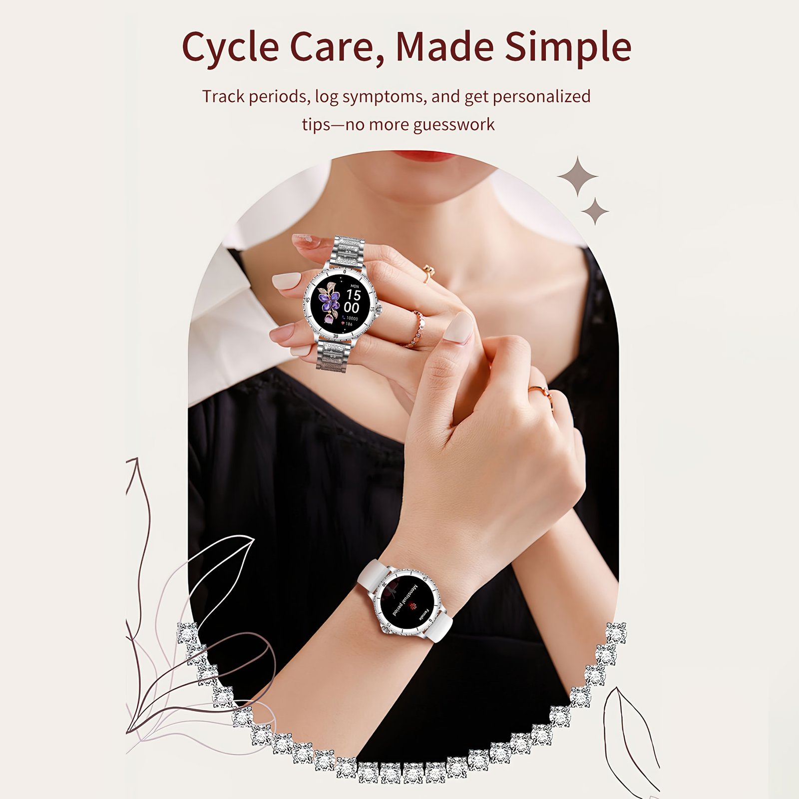 للمرأة التي تجمع بين الأناقة العصرية والأداء الفائق، نقدم لكِ ساعة RollsTimi الذكية. إنها ليست مجرد أداة لمراقبة الوقت، بل رفيقتك المثالية التي تليق بأسلوب حياتك النشط والمفعم بالجمال، وتمنحكِ تجربة فريدة تجمع بين التصميم الساحر والتكنولوجيا المتطورة في معصم يدكِ.