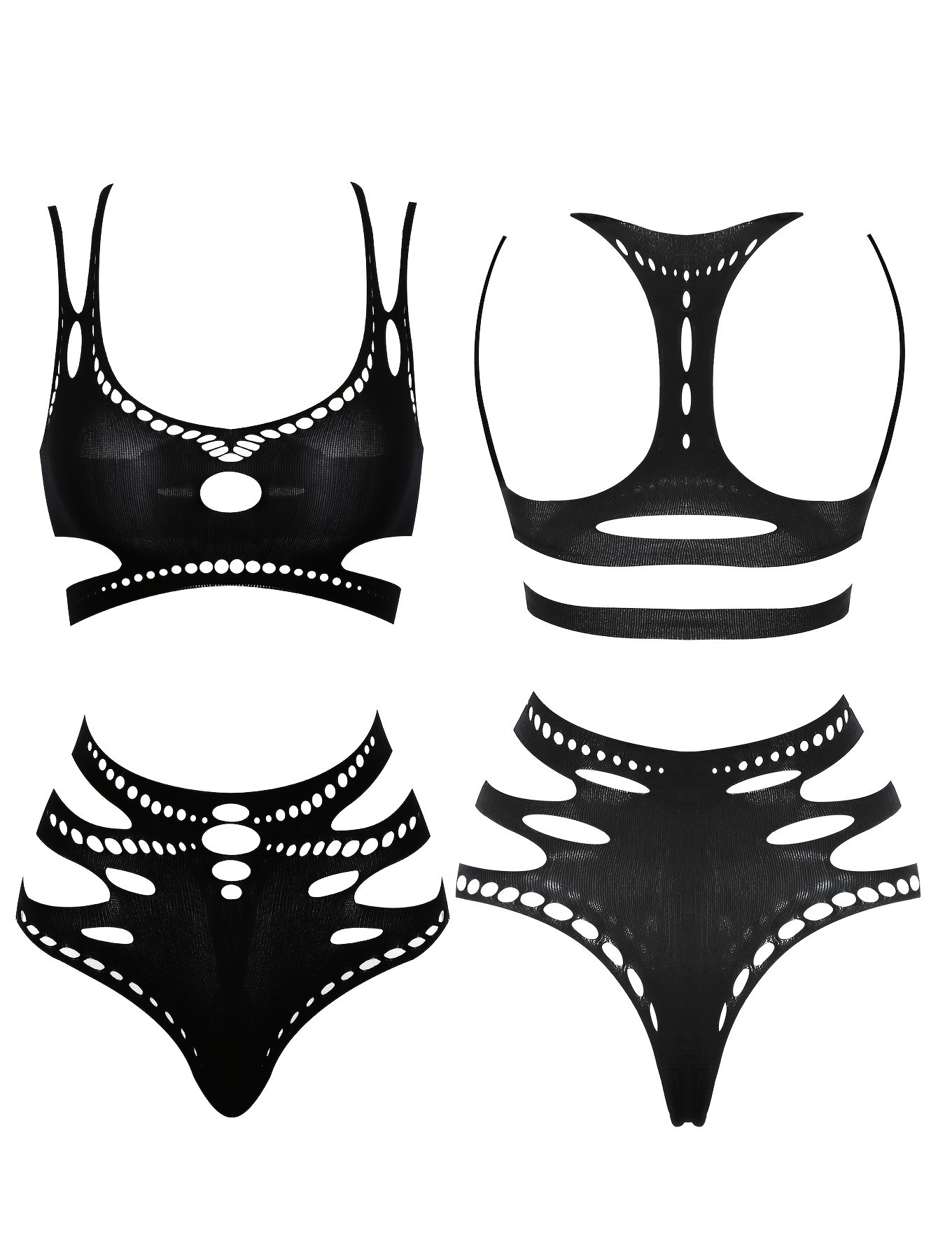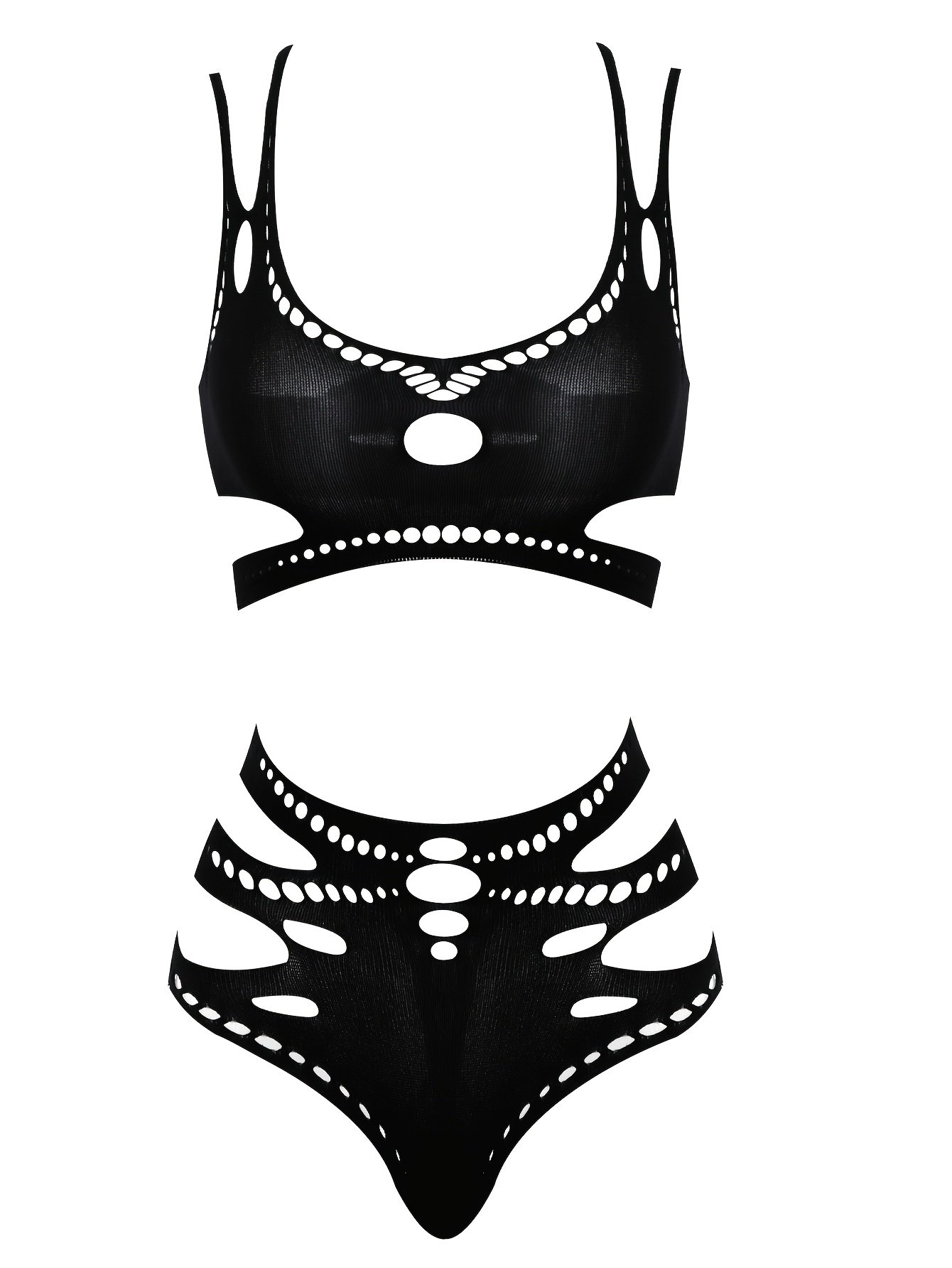 - تصميم شبكي فاتن من قطعتين: يتميز هذا الطقم الجذاب بتصميم شبكي مجوف وجريء، يجمع بين الغموض والإغراء في قطعة واحدة. إنه المزيج المثالي لإبراز جاذبيتكِ بأسلوب راقٍ ومثير يأسركِ ويأسر كل من يراكِ.