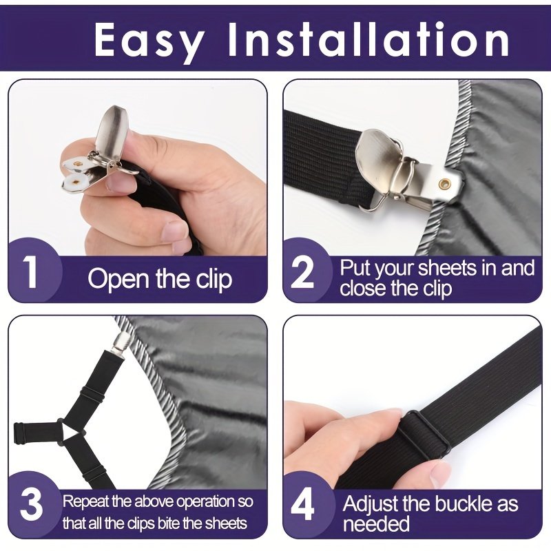 - متعددة الاستخدامات: مثالية لتثبيت ملاءات السرير، أغطية المراتب، وحتى أغطية وسائد الأريكة. حل واحد لجميع مشاكلك المتعلقة بالملاءات.