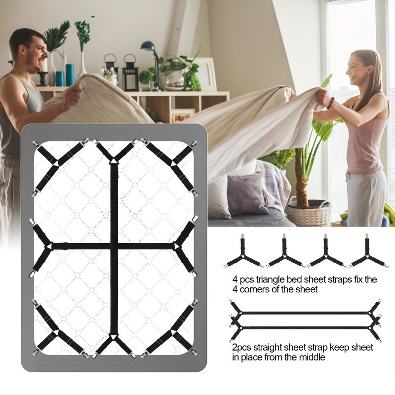 هل سئمت من الاستيقاظ لتجد ملاءات سريرك في غير مكانها؟ هل تزعجك الفوضى المستمرة على سريرك أو أريكتك؟ وداعاً لكل هذه المتاعب! نقدم لك الحل الأمثل لتثبيت مثالي ومريح: مثبتات الملاءات المثلثة المرنة.