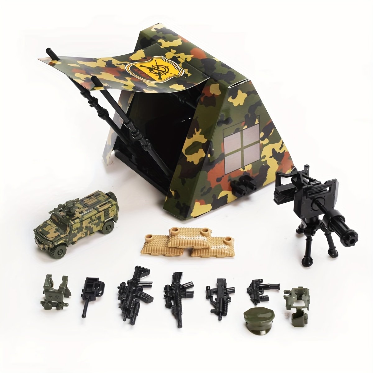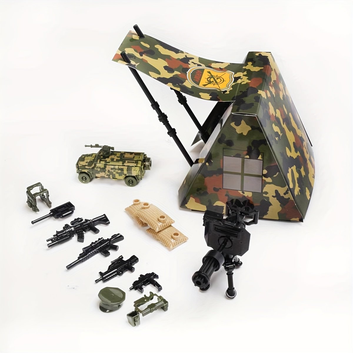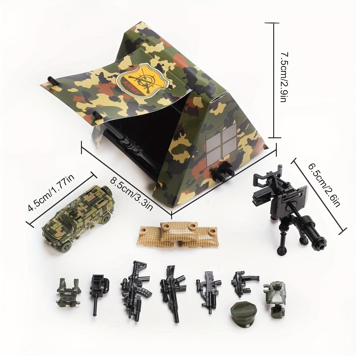 - مجموعة لعب متكاملة ومشهد تفصيلي: تتضمن المجموعة قاعدة دعم الخيام، دبابة قوية، ومعدات خارجية متنوعة، لتشكيل مشهد لعب متكامل يتيح مجالاً واسعاً للمغامرات والسيناريوهات المختلفة. إنها الهدية المثالية التي ستجلب الفرح والتعلم في أعياد الميلاد أو أي مناسبة خاصة.