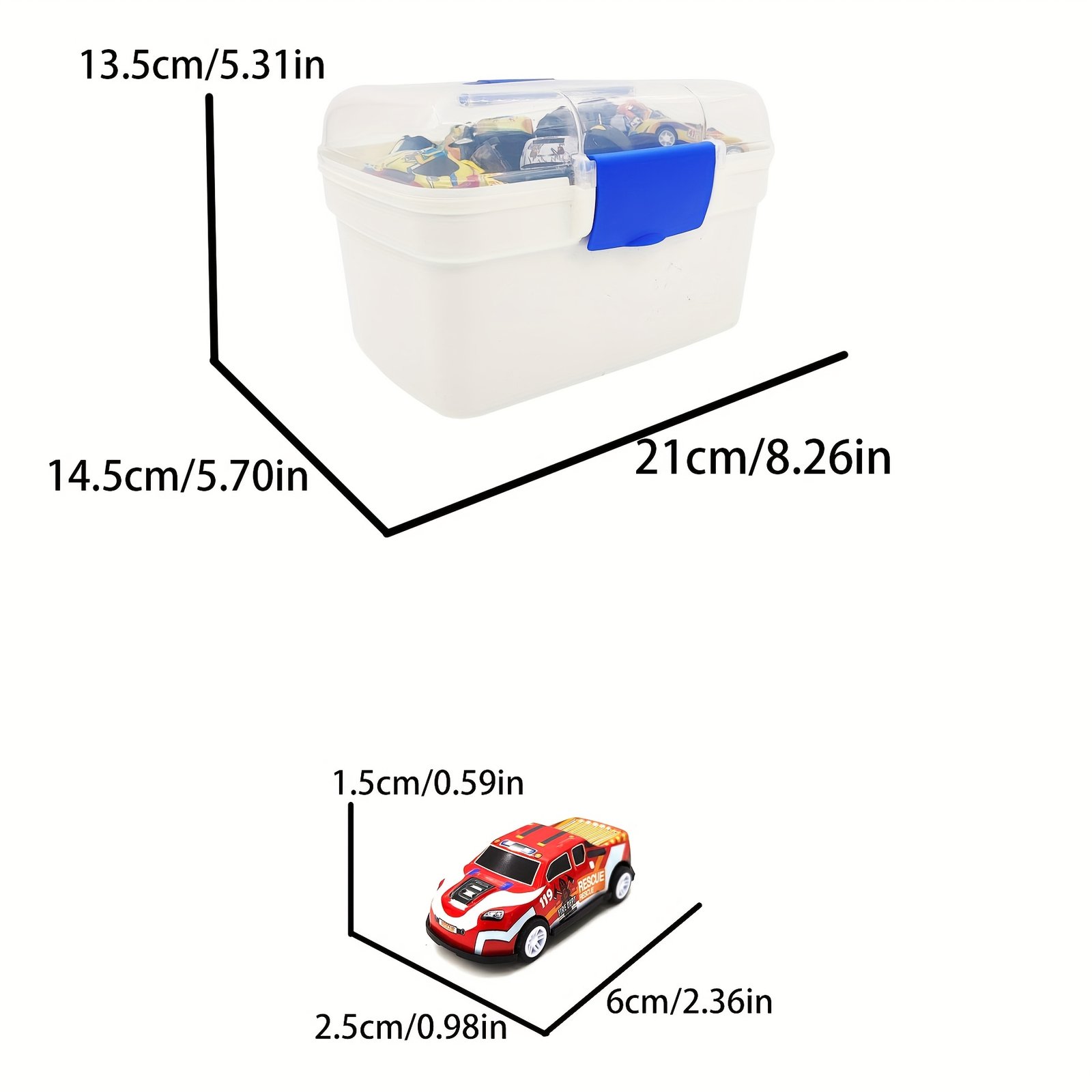 - صندوق تخزين عملي وأنيق: تأتي المجموعة في صندوق تخزين خاص بها، مما يجعل جمع السيارات وتنظيمها أمرًا سهلاً وممتعًا، ويُحافظ عليها منظمة وجاهزة للمغامرة القادمة في أي وقت وأي مكان.
