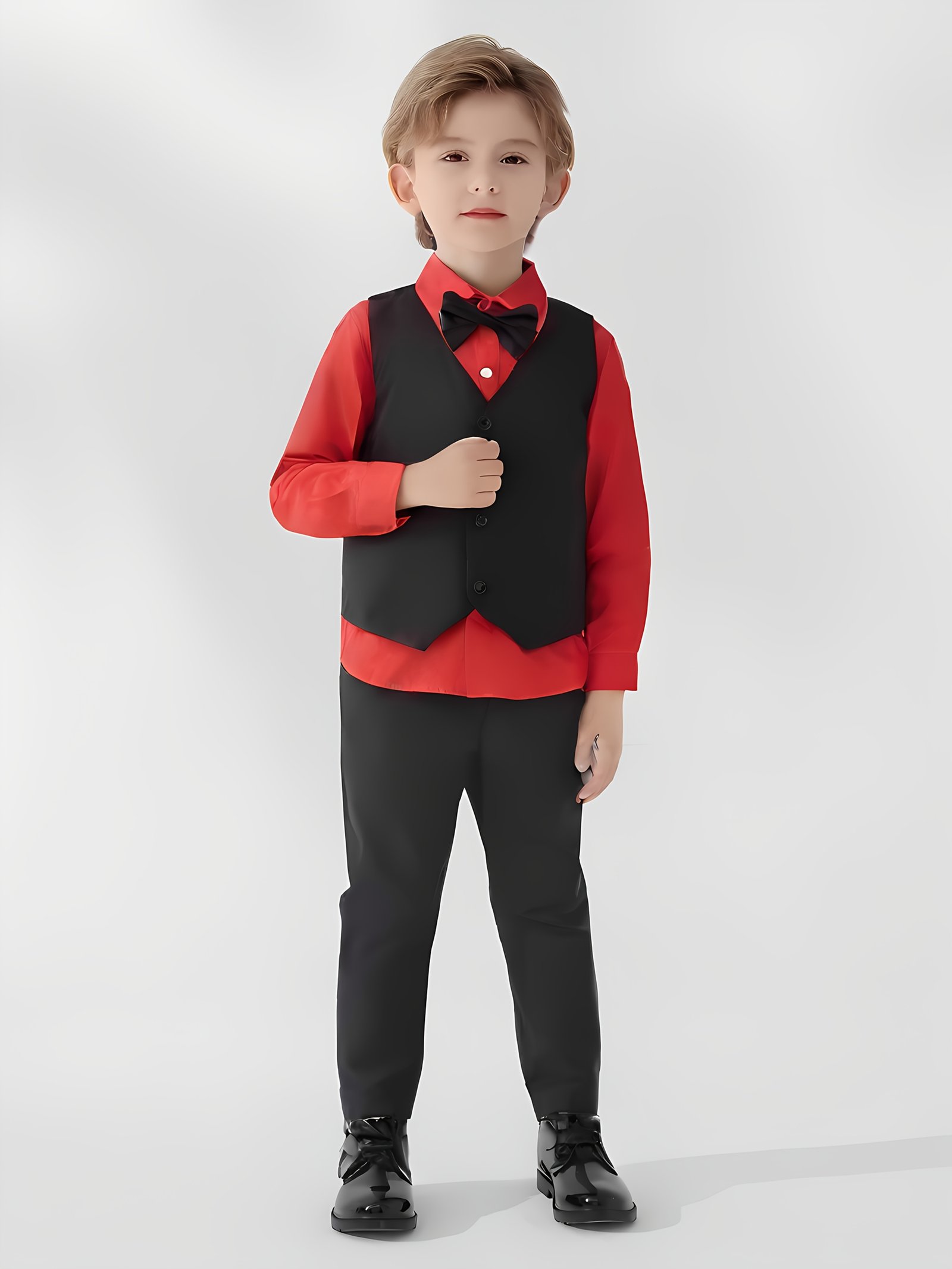 - طقم متكامل لإطلالة فاخرة: يتضمن قميصاً أنيقاً بأكمام طويلة، سترة رسمية جذابة، وبنطالاً مريحاً، ليضمن لطفلك مظهراً متناسقاً وجذاباً في جميع الأوقات.