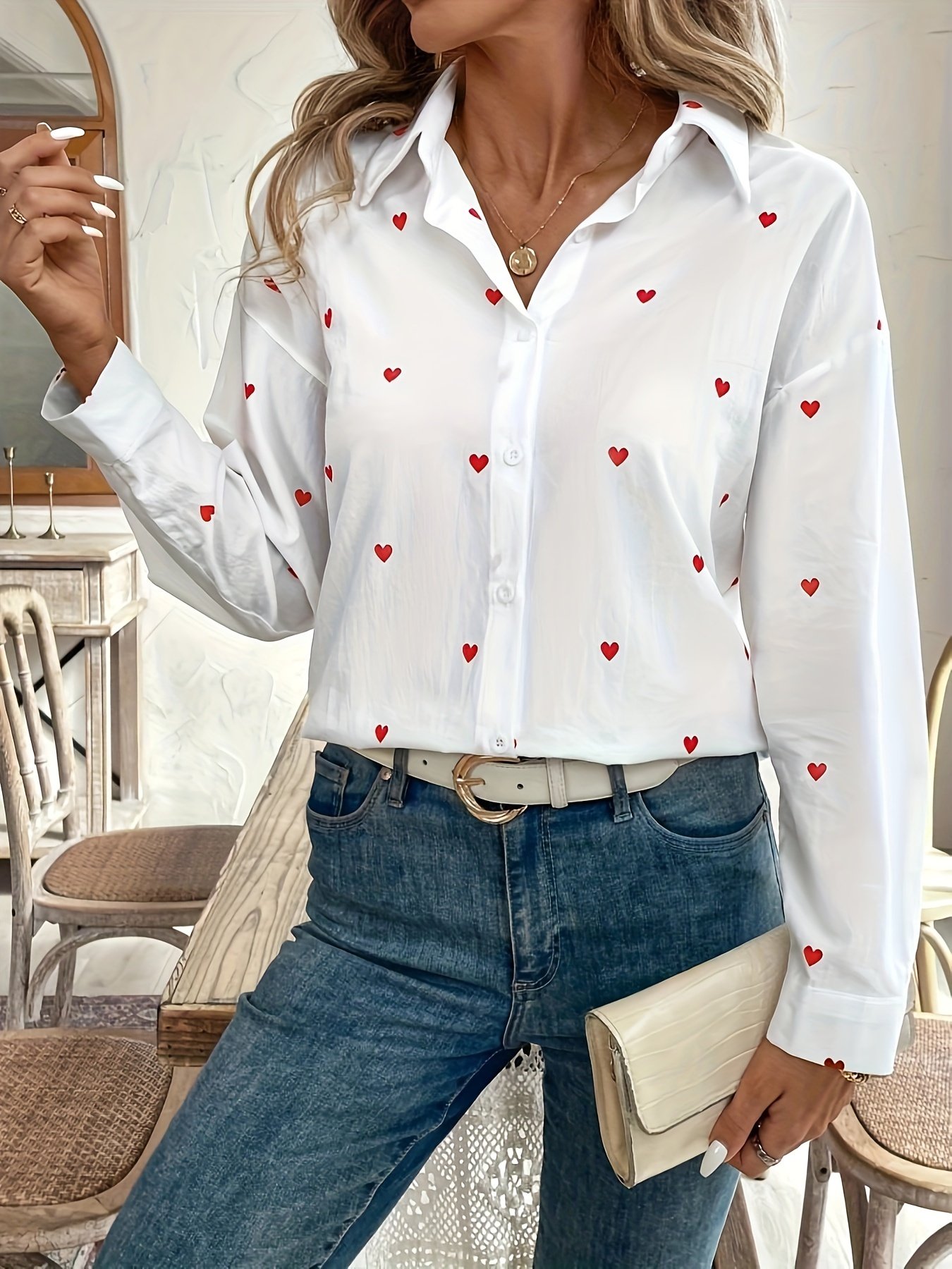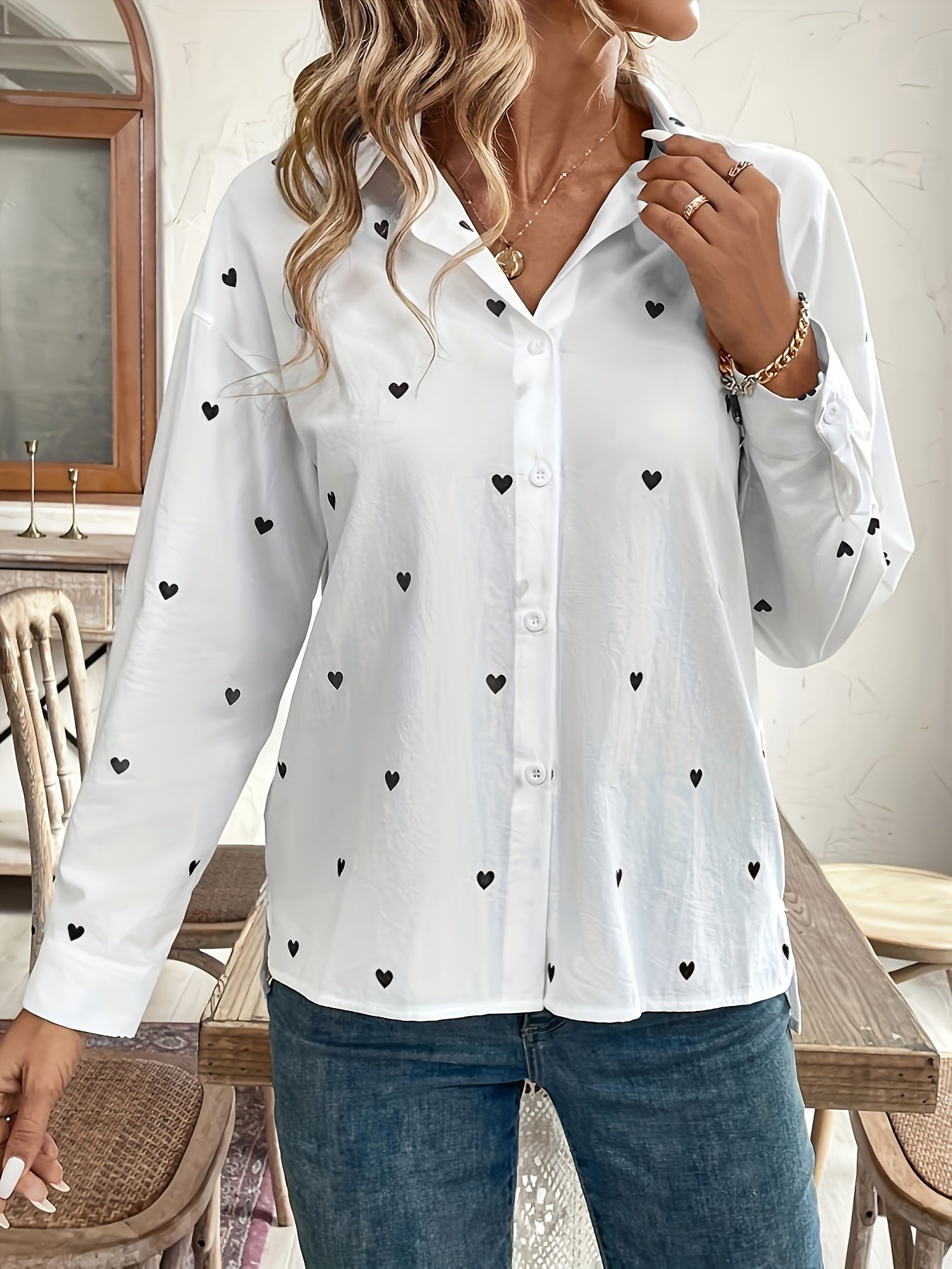 استعدي لتجربة فريدة من الأناقة والراحة مع قميصنا الجديد المصمم خصيصاً للمرأة العصرية التي تبحث عن لمسة من السحر في إطلالاتها اليومية. يجمع هذا القميص بين التصميم الكاجوال الجذاب والخامات عالية الجودة ليمنحكِ مظهراً متألقاً وشعوراً بالراحة يدوم طوال اليوم، سواء كنتِ تستقبلين نسائم الربيع المنعشة أو تعانقين ألوان الخريف الدافئة. دعي قلبكِ يعبر عن أناقتكِ!