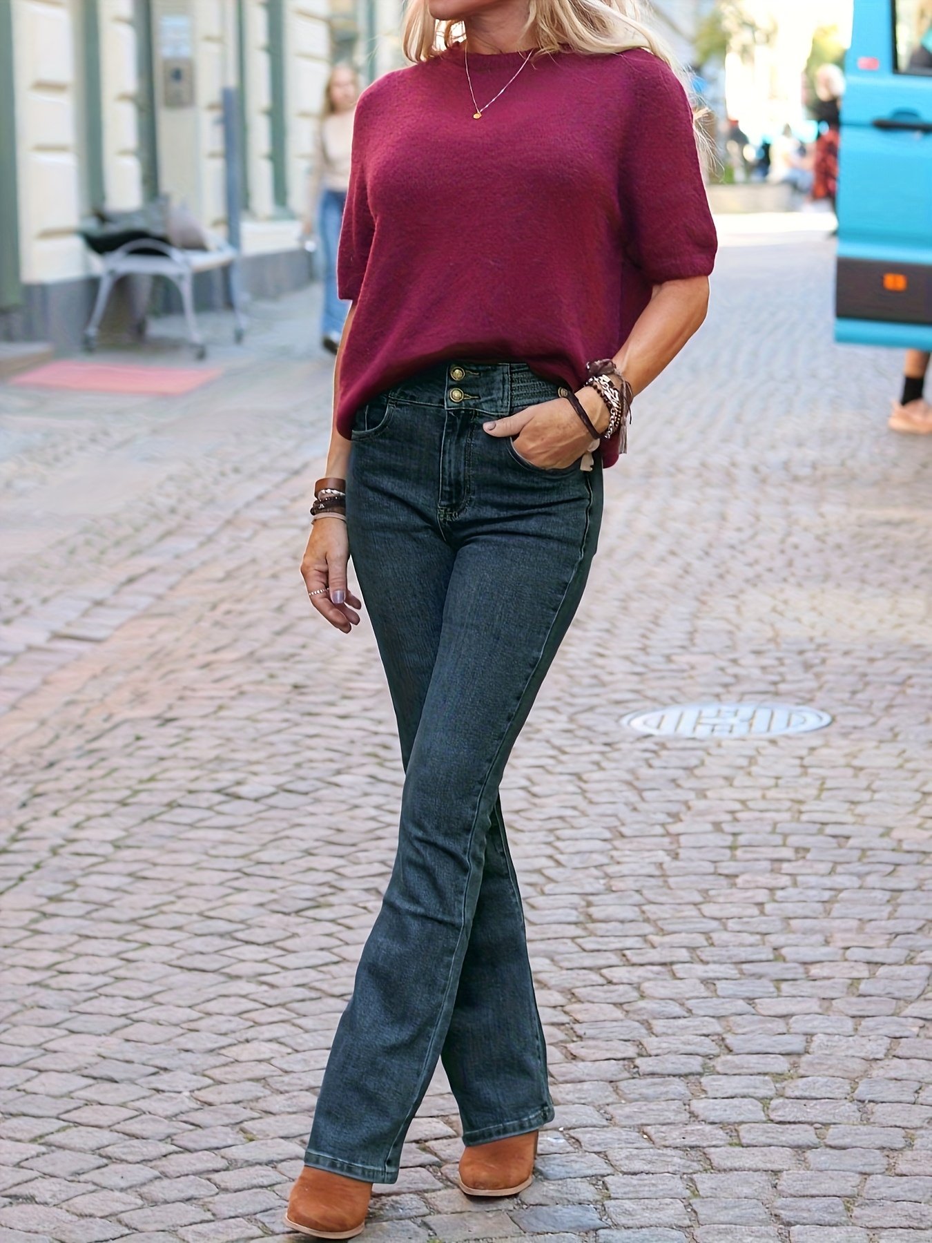 - قصة الخصر العالي المستقيمة: تصميم أيقوني يعزز من جمال القوام ويمنحكِ إطلالة أنيقة وممشوقة، مع تأثير بصري مميز يطيل الساقين ليمنحكِ مظهراً أكثر جاذبية وثقة.