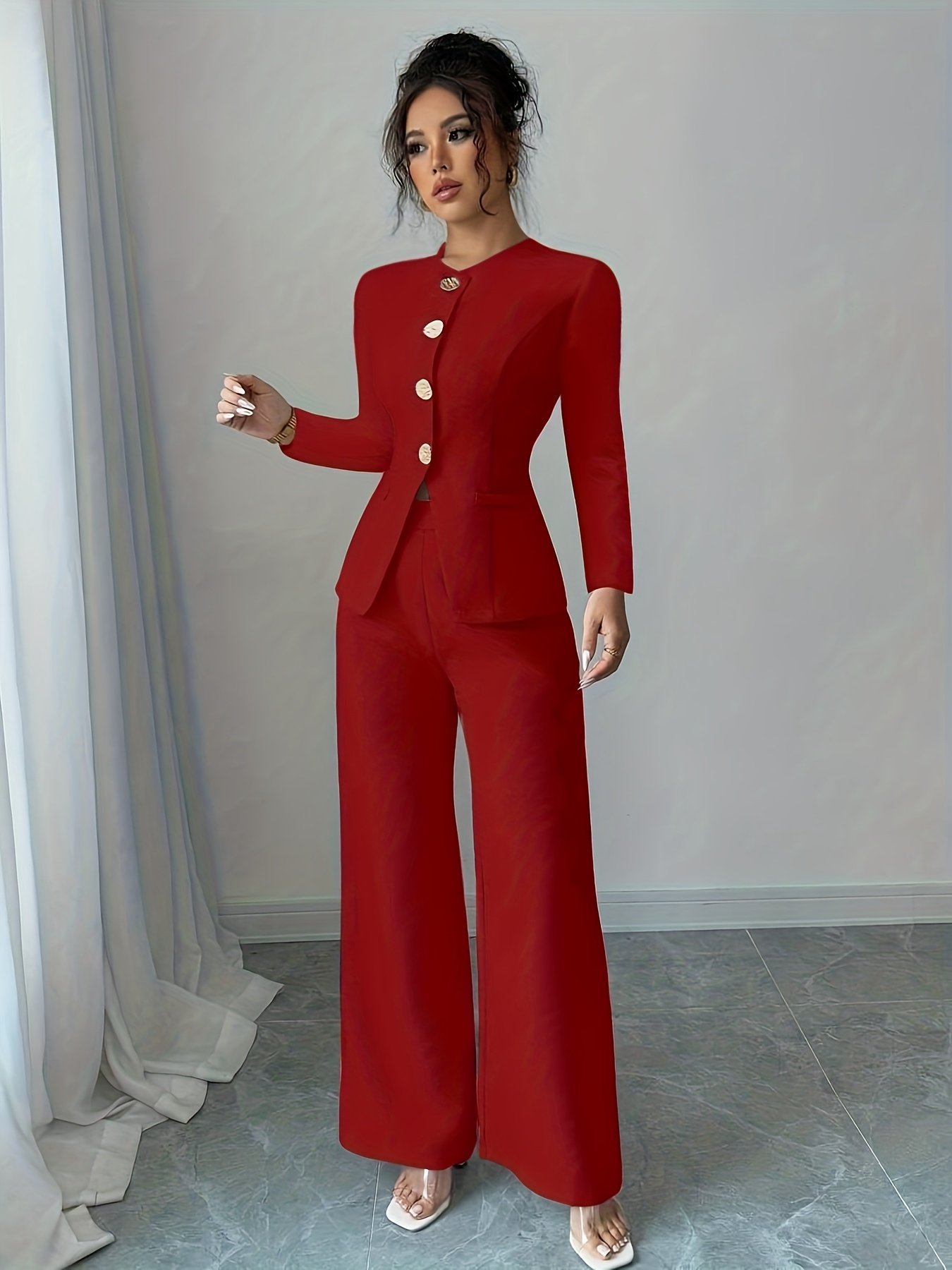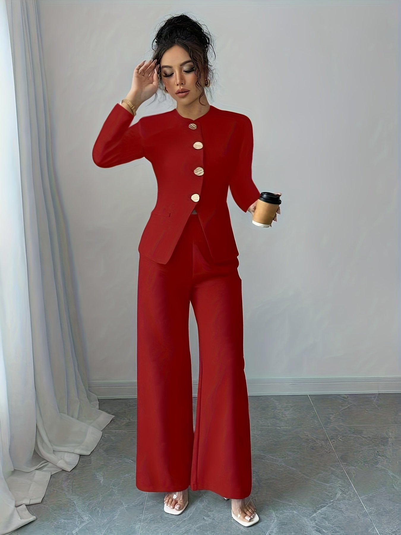 هل تبحثين عن إطلالة تجمع بين الأناقة الراقية والاحترافية المطلقة؟ اكتشفي طقم البدلة النسائية الأحمر الفاخر، المصمم خصيصاً للمرأة العصرية التي تسعى للتميز في كل تفاصيل مظهرها. هذا الطقم المكون من قطعتين يمنحكِ حضوراً آسراً وثقة لا متناهية، سواء كنتِ في اجتماع عمل مهم أو تستعدين ليوم حافل في المكتب. اجعلي كل خطوة تخطينها تعكس أناقتكِ وجديتكِ مع هذا الطقم الفريد.