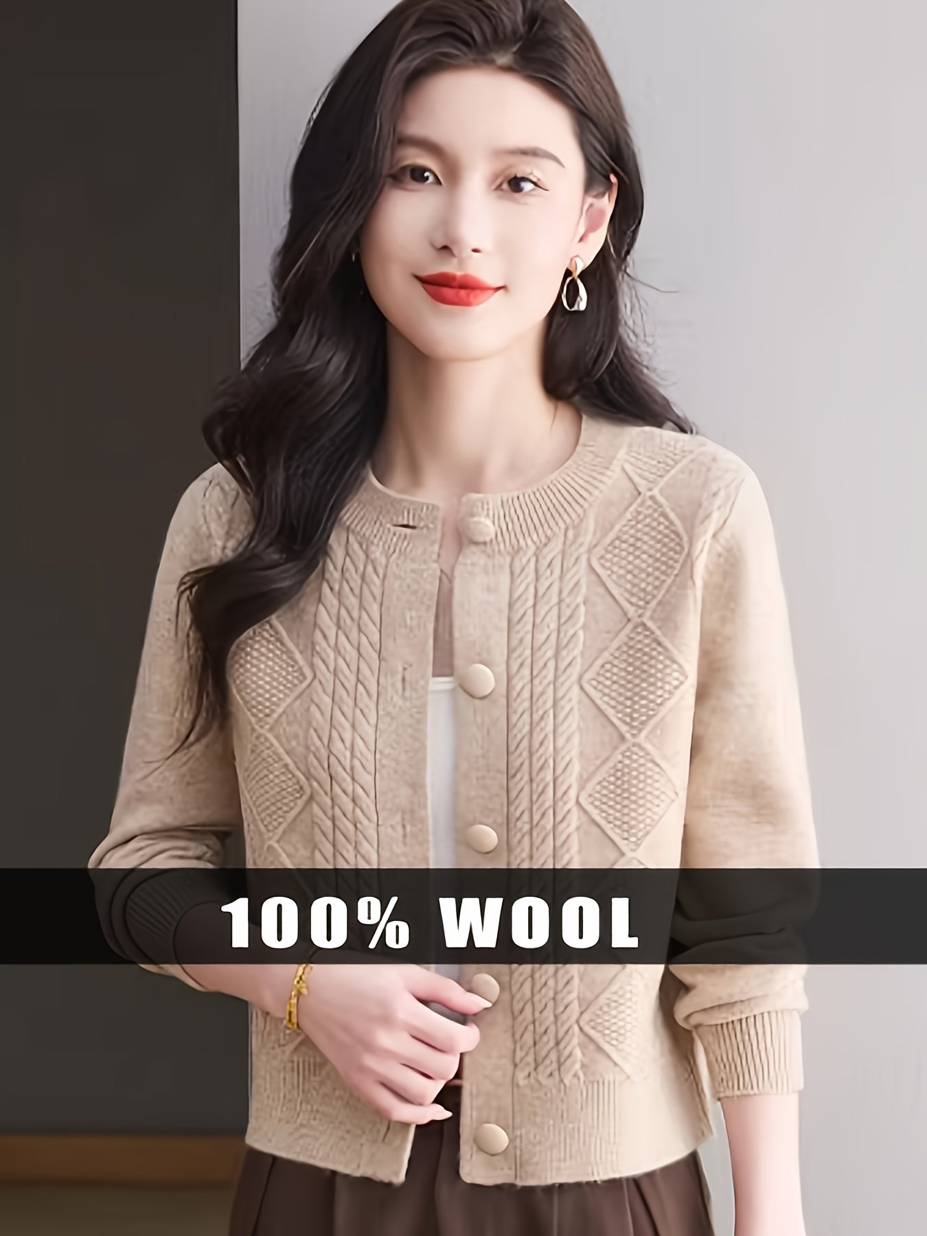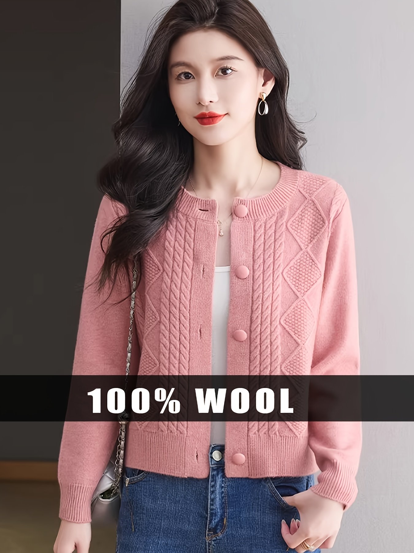 - تصميم بنقشة ماسية راقية: يضفي النسيج المحبوك بمهارة بنقشة ماسية لمسة من الفخامة والعمق، مما يجعل هذا الكارديجان قطعة فريدة تبرز أناقتكِ بأسلوب عصري ومتميز.