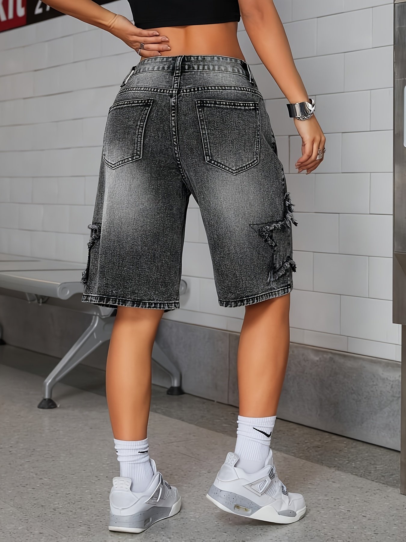استعدي لاستقبال مواسم الربيع والصيف بأناقة لا مثيل لها مع شورت برمودا الدنيم الأسود، المصمم خصيصاً ليمنحكِ إطلالة عصرية ومريحة في آن واحد. بلمسة من النجوم المتلألئة، يضيف هذا الشورت لمسة فريدة وجذابة لمظهركِ اليومي، ليصبح القطعة المفضلة لديكِ في كل مغامراتكِ الصيفية.