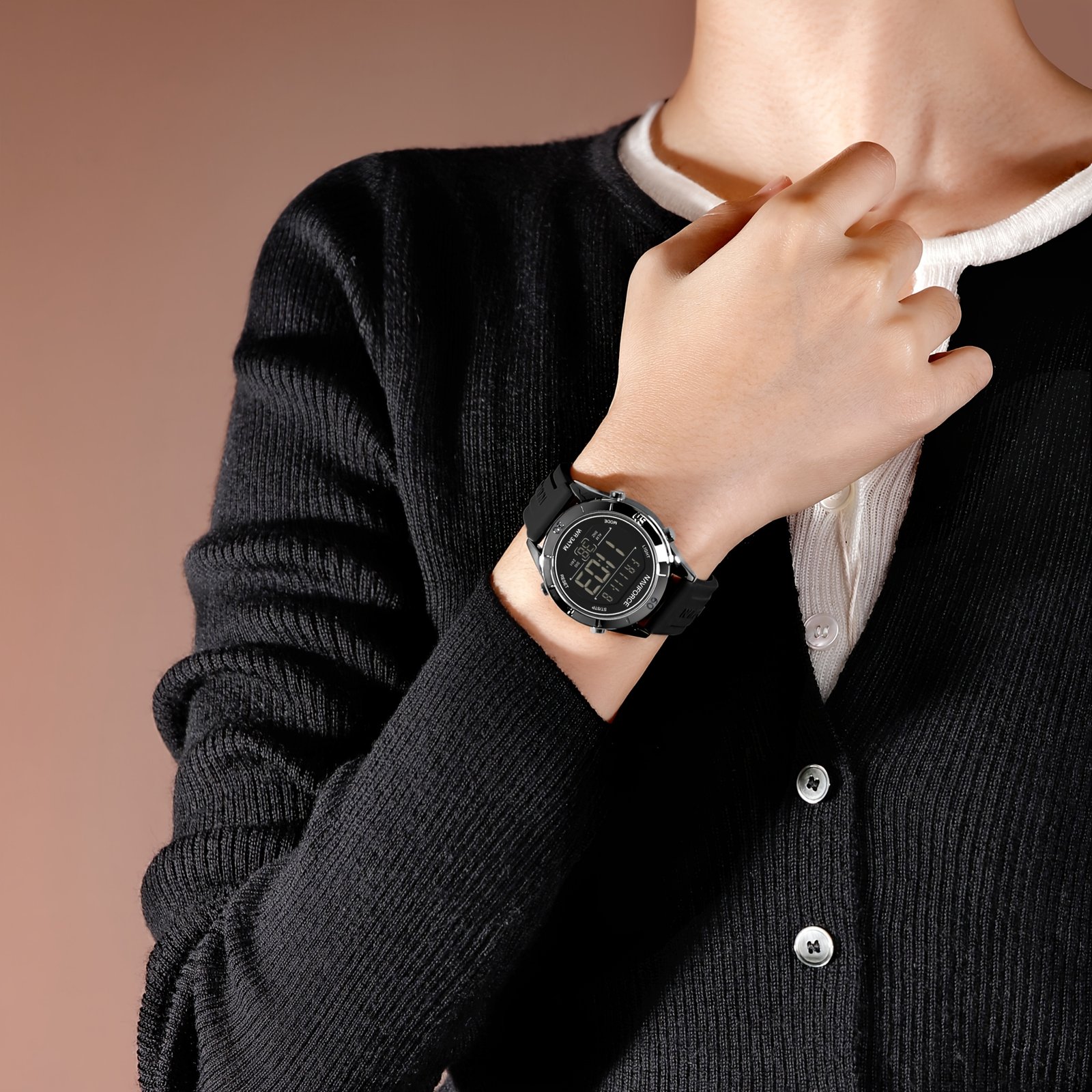- حزام مريح وأنيق: مصنوع من السيليكون عالي الجودة، يلتف حول معصمك بنعومة فائقة لتوفير راحة لا مثيل لها طوال اليوم، مع تصميم يضيف لمسة عصرية لمظهرك.