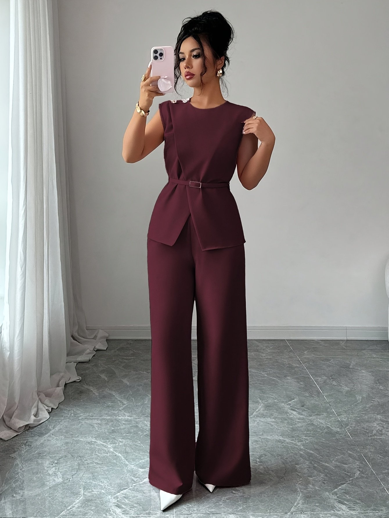 - تصميم عصري وجذاب: يتميز بفيست أنيق بدون أكمام وبنطال طويل بقصة متناسقة، يمنحكِ إطلالة متكاملة وعصرية تناسب مختلف الأوقات من الصباح إلى المساء.