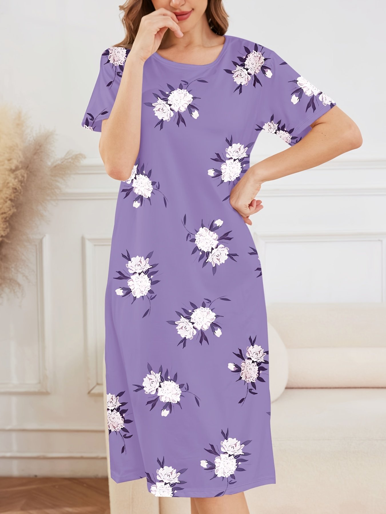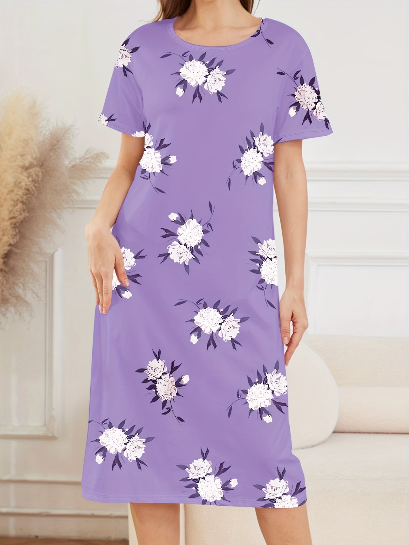 • رقبة مستديرة مريحة: تصميم كلاسيكي يضمن لكِ أقصى درجات الراحة دون أي قيود أو تهيج، مثالي للاسترخاء التام.