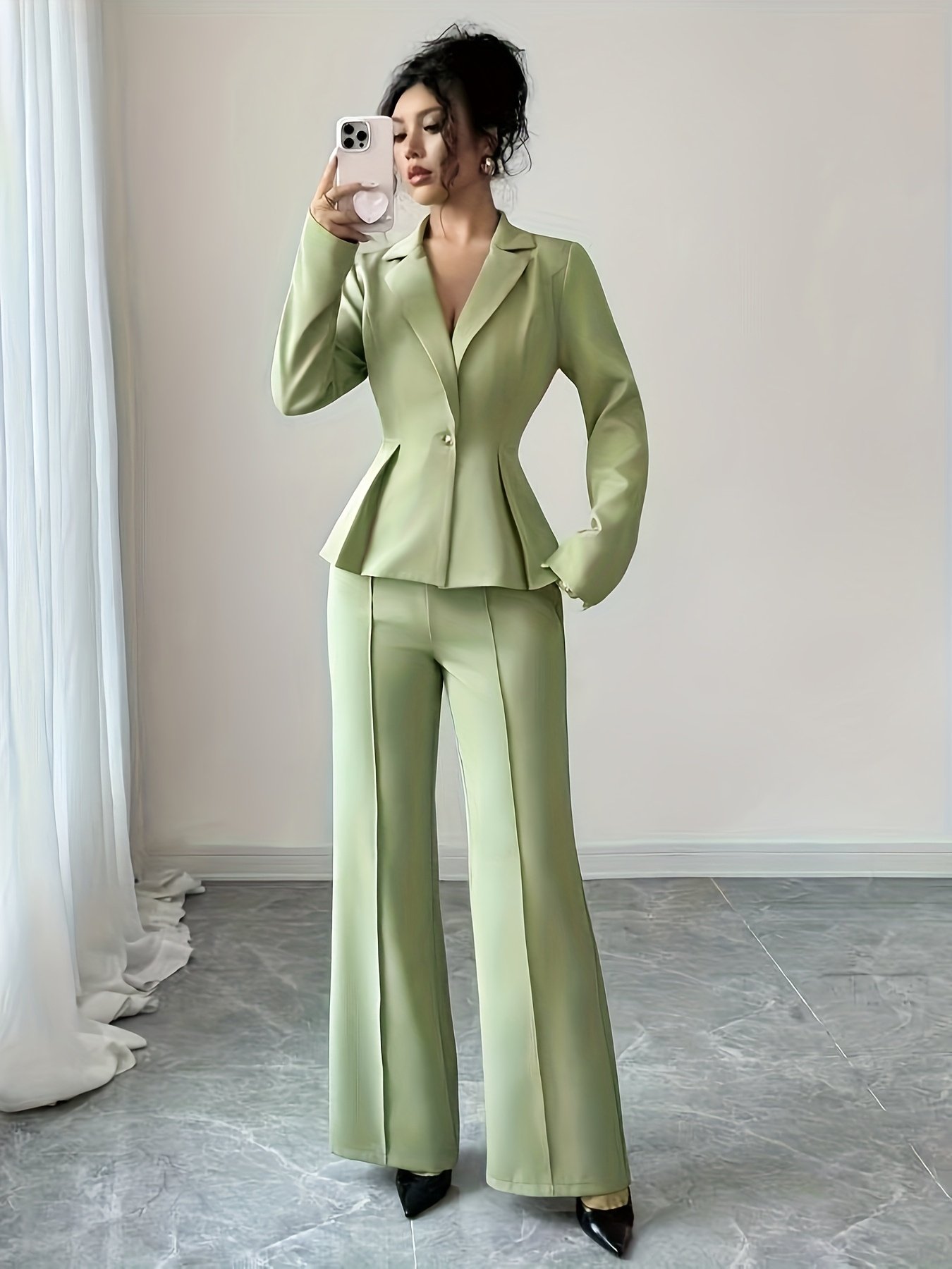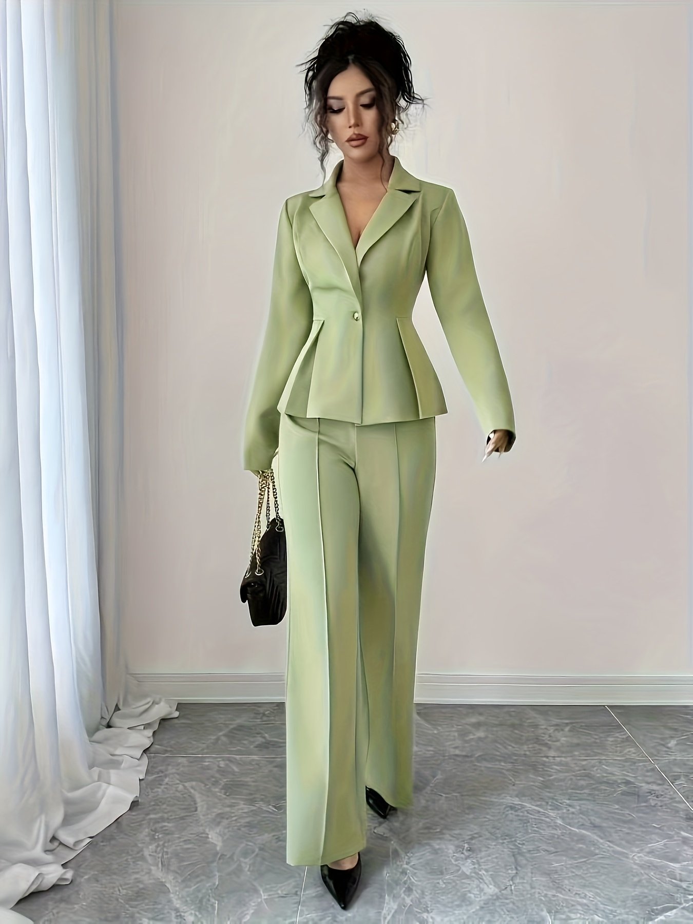- إطلالة متعددة الاستخدامات: سواء كنتِ تستعدين لاجتماع عمل هام، أو ليوم في المكتب، أو حتى لمناسبة اجتماعية أنيقة، فإن هذا الطقم هو خياركِ الأمثل لإطلالة تجمع بين الرقي والاحترافية، ومثالي لفصلي الربيع والخريف.