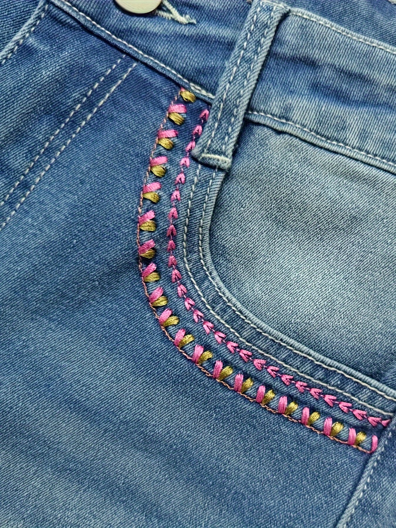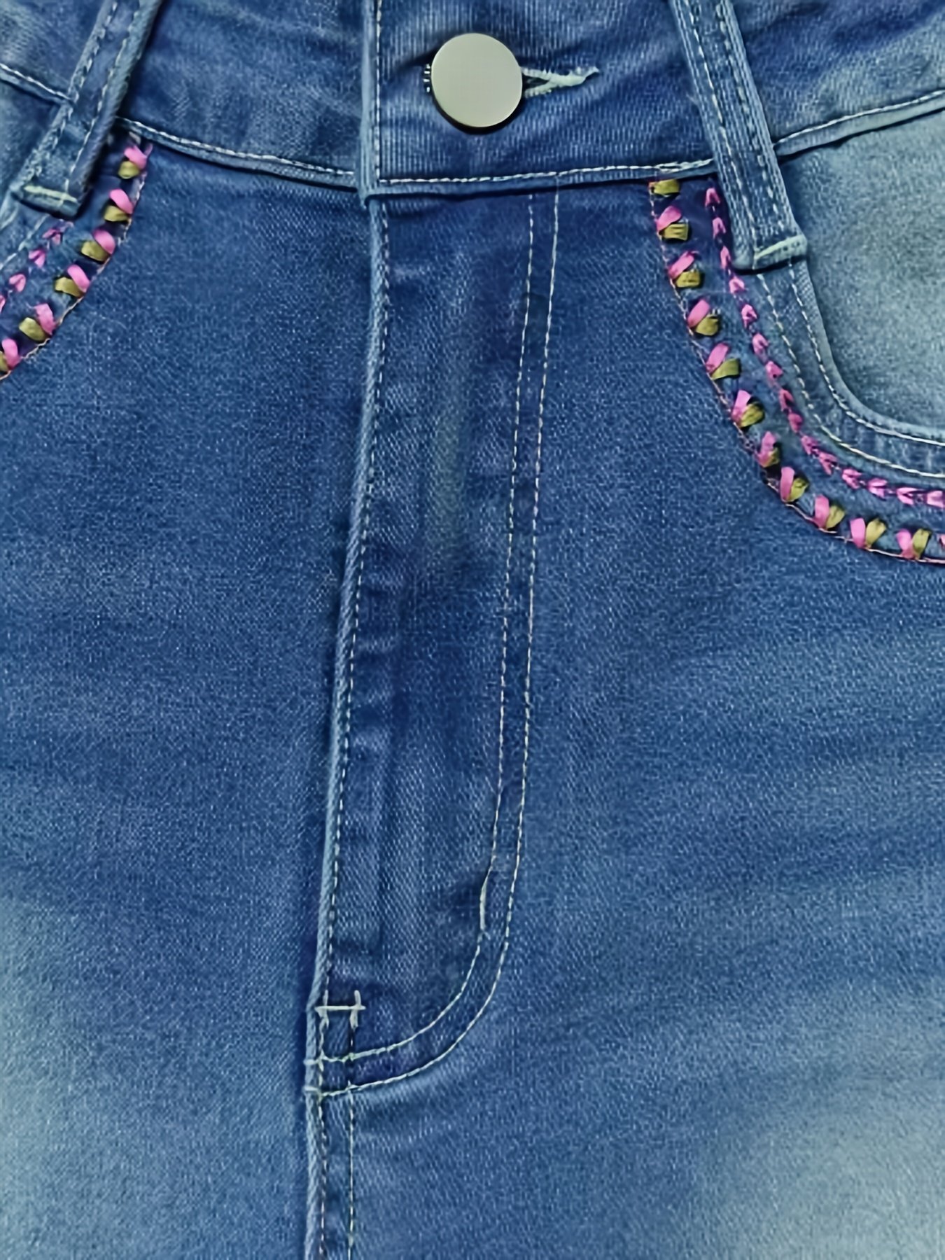 - نسيج عالي الجودة: مزيج مثالي من 75% قطن لراحة فائقة، 23% بوليستر للمتانة، و 2% إيلاستين لمرونة استثنائية تحافظ على شكل الجينز وتناسب جسمكِ بامتياز.