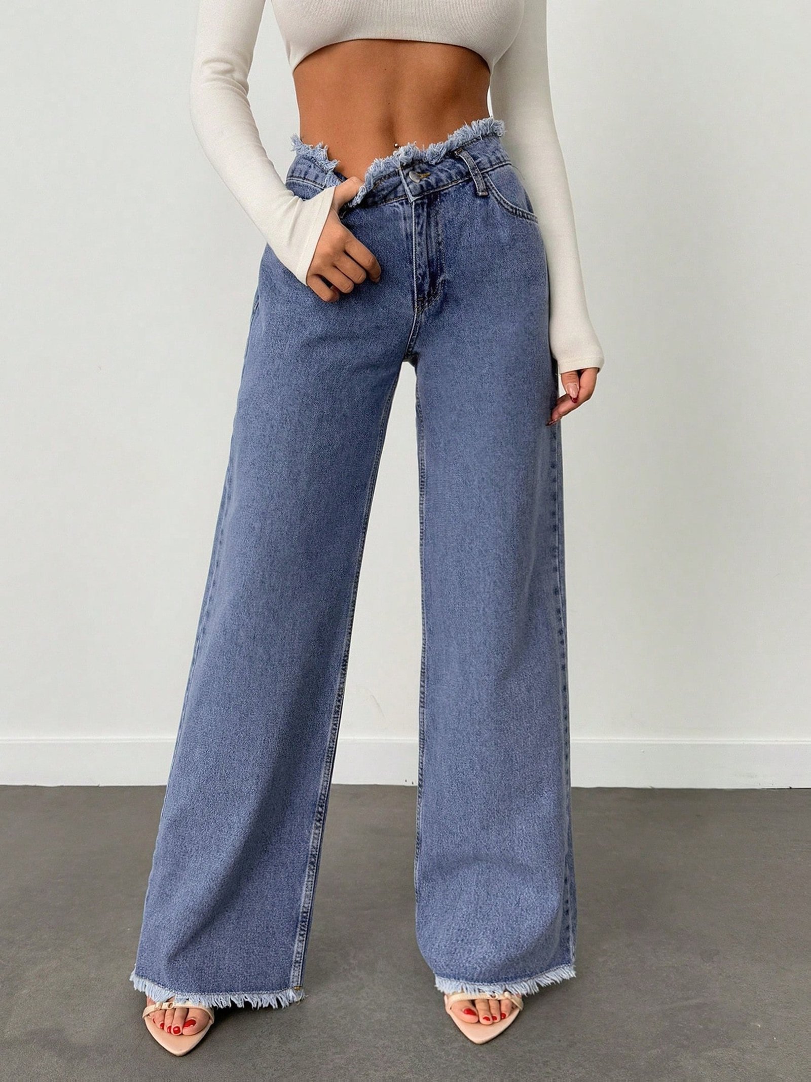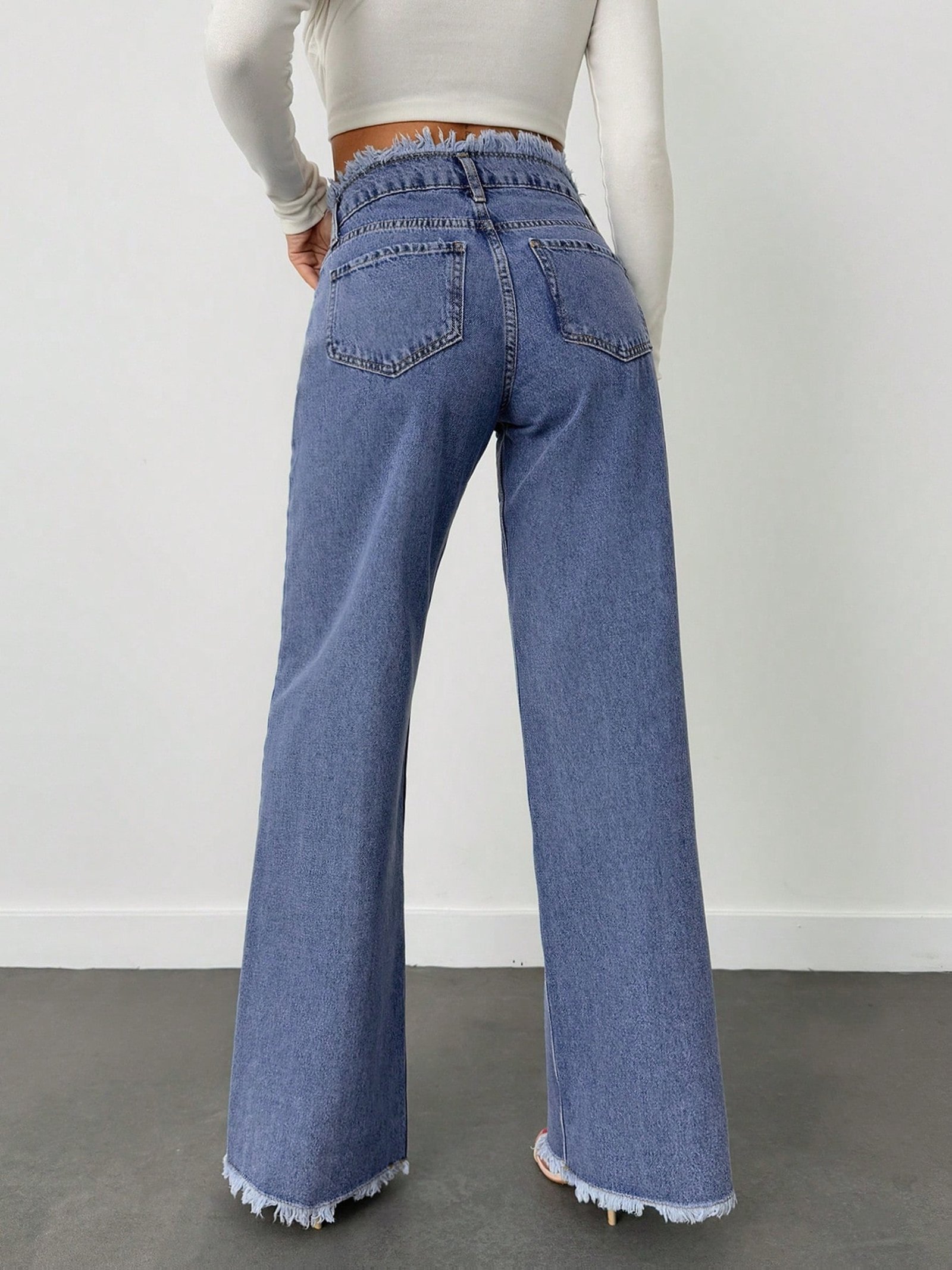 - حواف قصيرة غير معالجة (Raw Hem): تفصيلة عصرية ومميزة تضيف لمسة جرأة وأناقة فريدة لإطلالتكِ، مما يبرز ذوقكِ الرفيع.