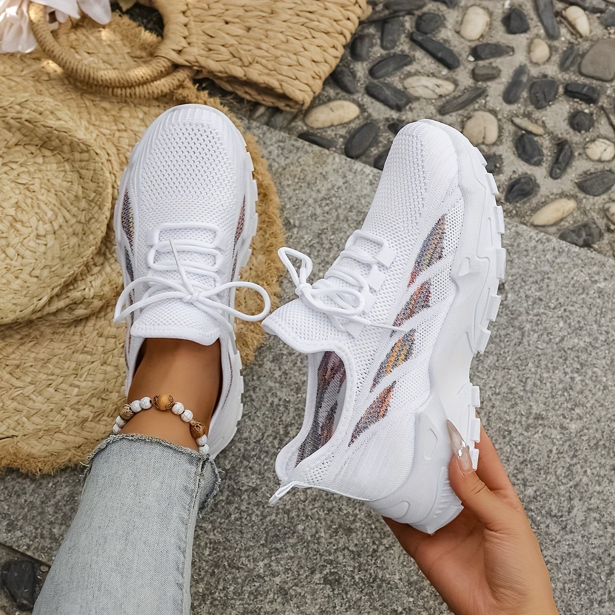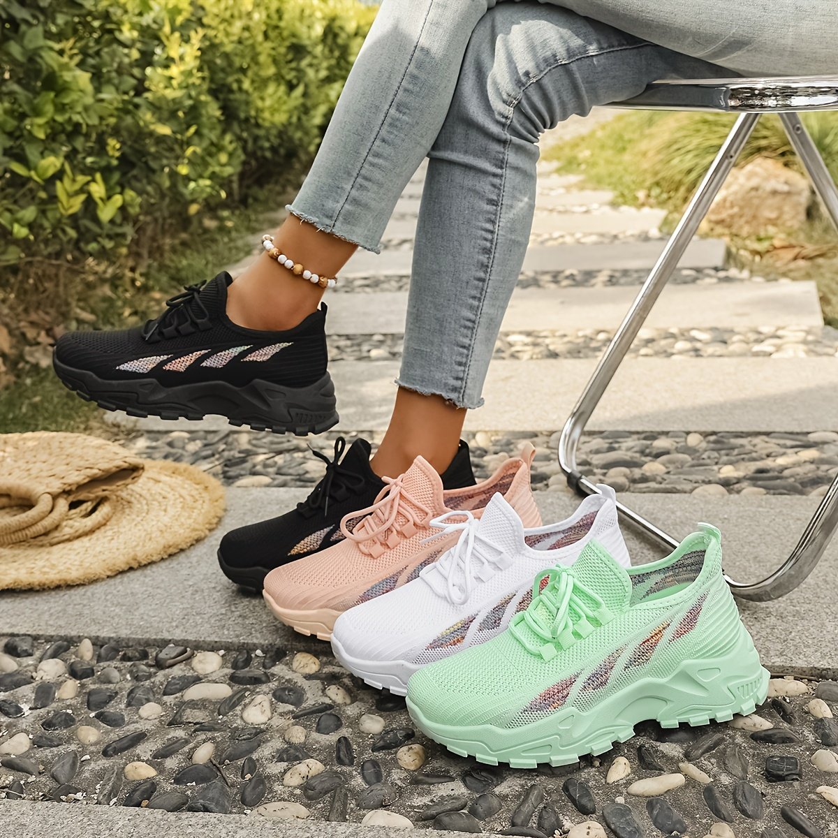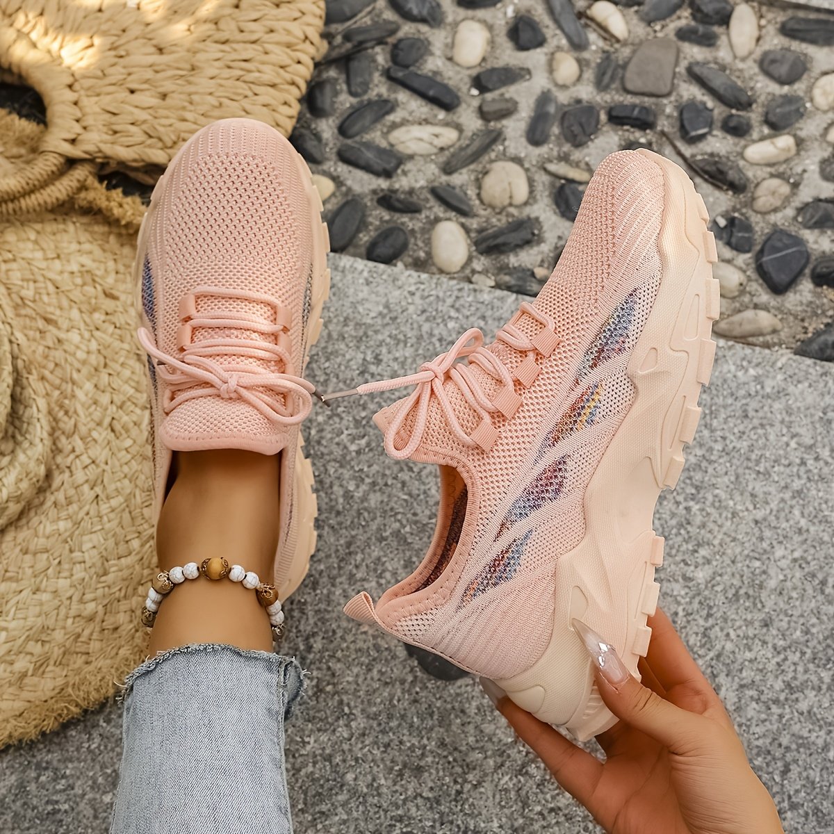 - خفة الوزن وتهوية فائقة: مصنوع من نسيج محبوك عالي الجودة يضمن أقصى درجات التهوية لقدميكِ، مما يحافظ عليها منتعشة وجافة طوال اليوم، وكأنكِ لا ترتدين شيئًا.