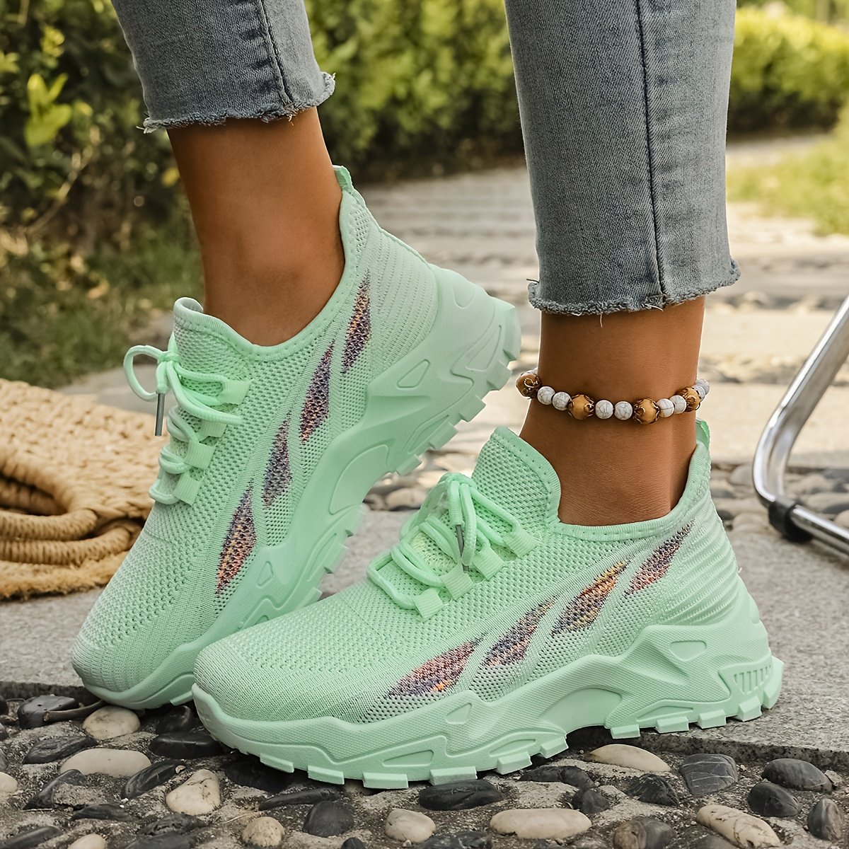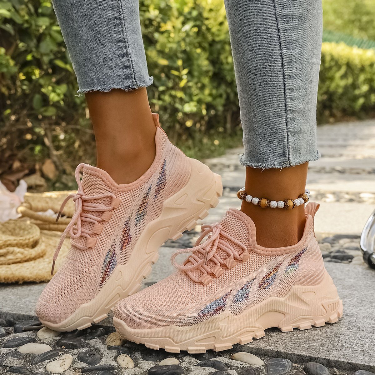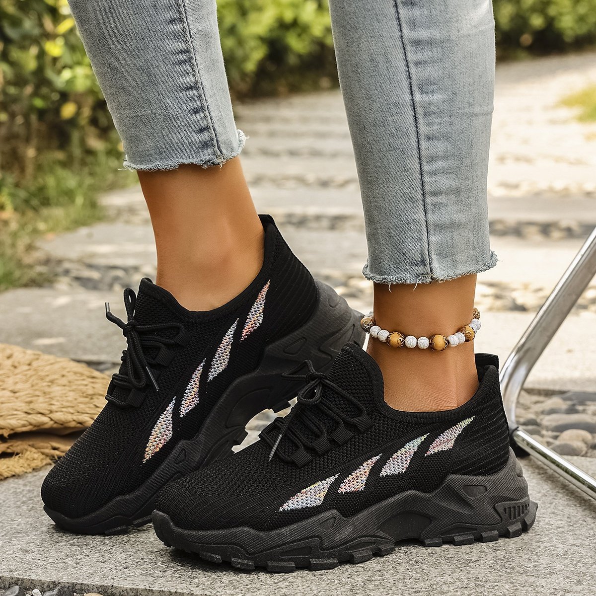 - خفة الوزن وتهوية فائقة: مصنوع من نسيج محبوك عالي الجودة يضمن أقصى درجات التهوية لقدميكِ، مما يحافظ عليها منتعشة وجافة طوال اليوم، وكأنكِ لا ترتدين شيئًا.