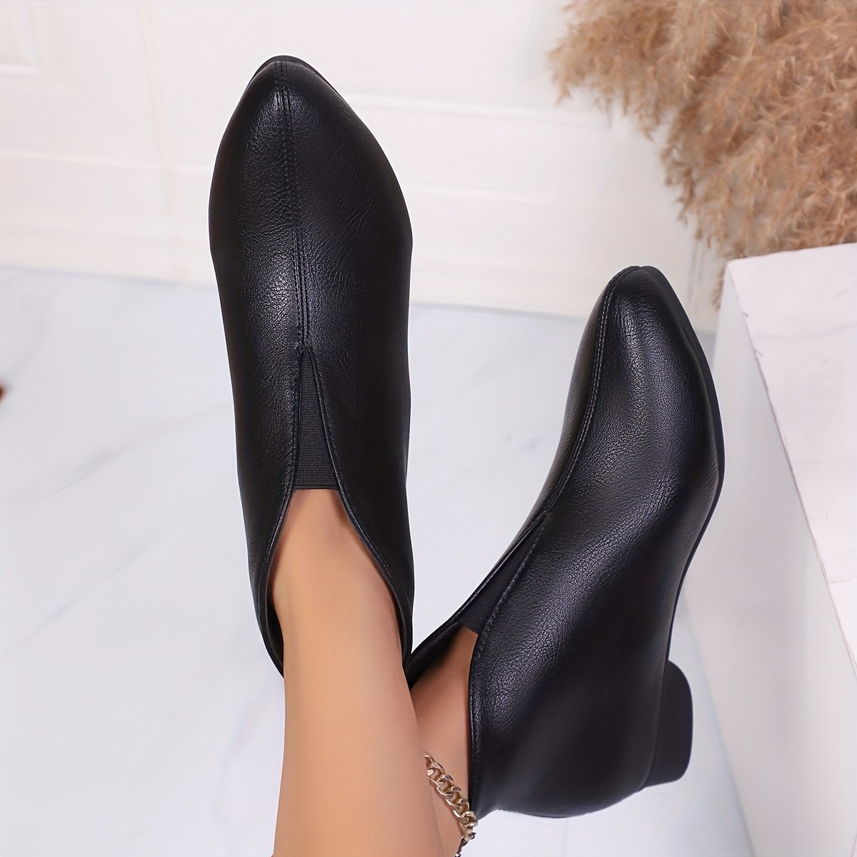 - تصميم مدبب أنيق: يمنح قدميكِ مظهرًا رشيقًا وجذابًا، مثاليًا لإطلالة عصرية ومتكاملة تليق بكِ في كل مناسبة.
