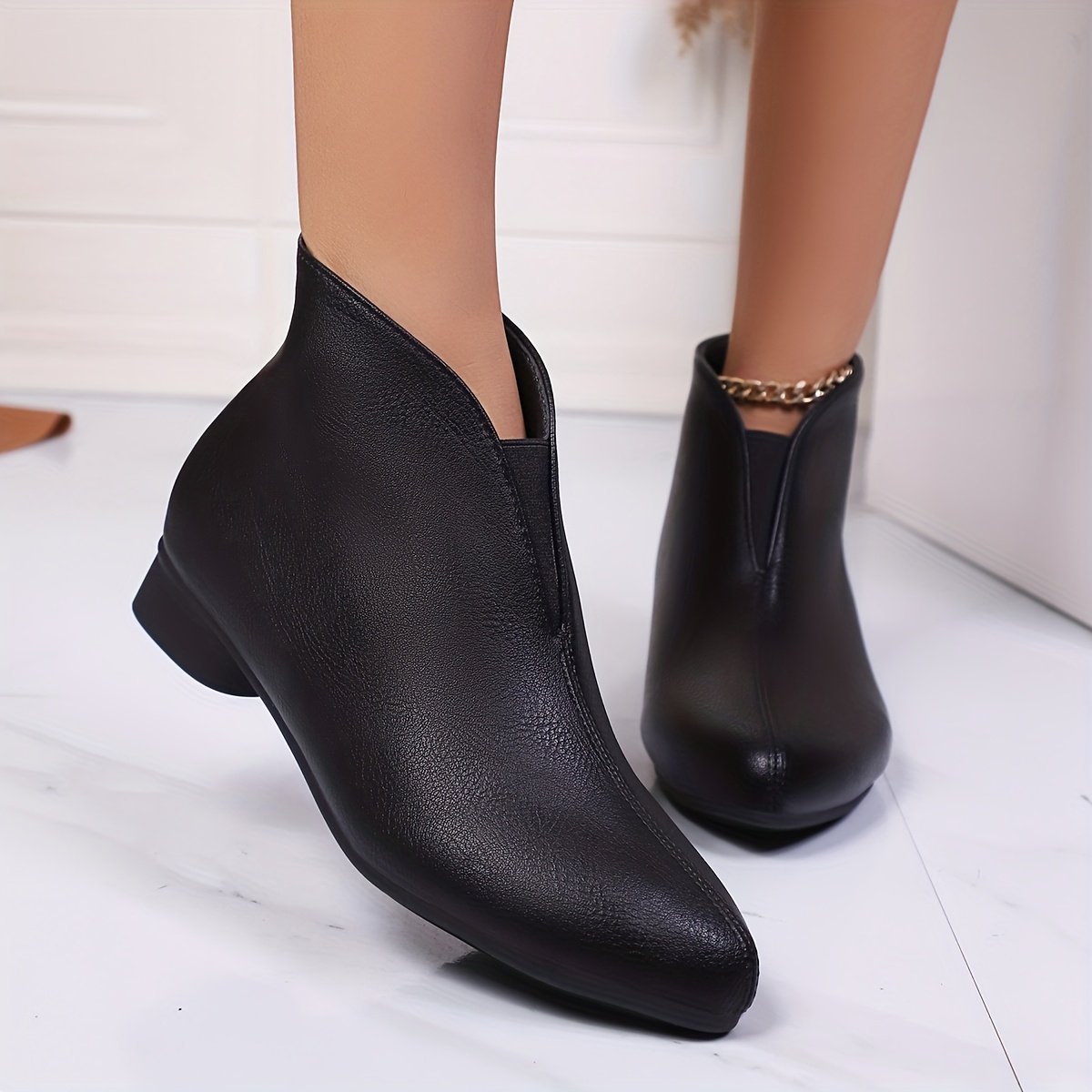 اخطفي الأنظار ودعي أناقتك تتحدث مع حذاء الكاحل الأسود الذي يجمع بين التصميم العصري والراحة الفائقة. صُمم هذا الحذاء ليرافقك في جميع مناسباتك، من لقاءات العمل الرسمية إلى أمسياتك الكاجوال الممتعة، ليضفي لمسة من الرقي والأناقة على إطلالتك ويجعلكِ تشعرين بالثقة والتميز مع كل خطوة.