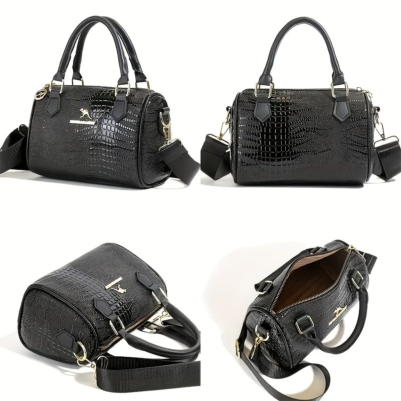 - تصميم بنقشة التمساح الفاخرة: استمتعي بلمسة من الرقي والفخامة مع نقشة التمساح العصرية التي تمنح الحقيبة مظهراً جذاباً ومميزاً، مصنوعة من جلد صناعي عالي الجودة لضمان المتانة والأناقة.