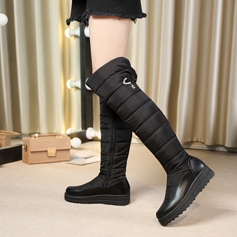 - دفء وحماية شاملة: تصميم يمتد فوق الركبة يوفر عزلًا حراريًا فائقًا ويحمي ساقيكِ بالكامل من البرد القارس والثلوج، مما يضمن دفئكِ وراحتكِ طوال اليوم.