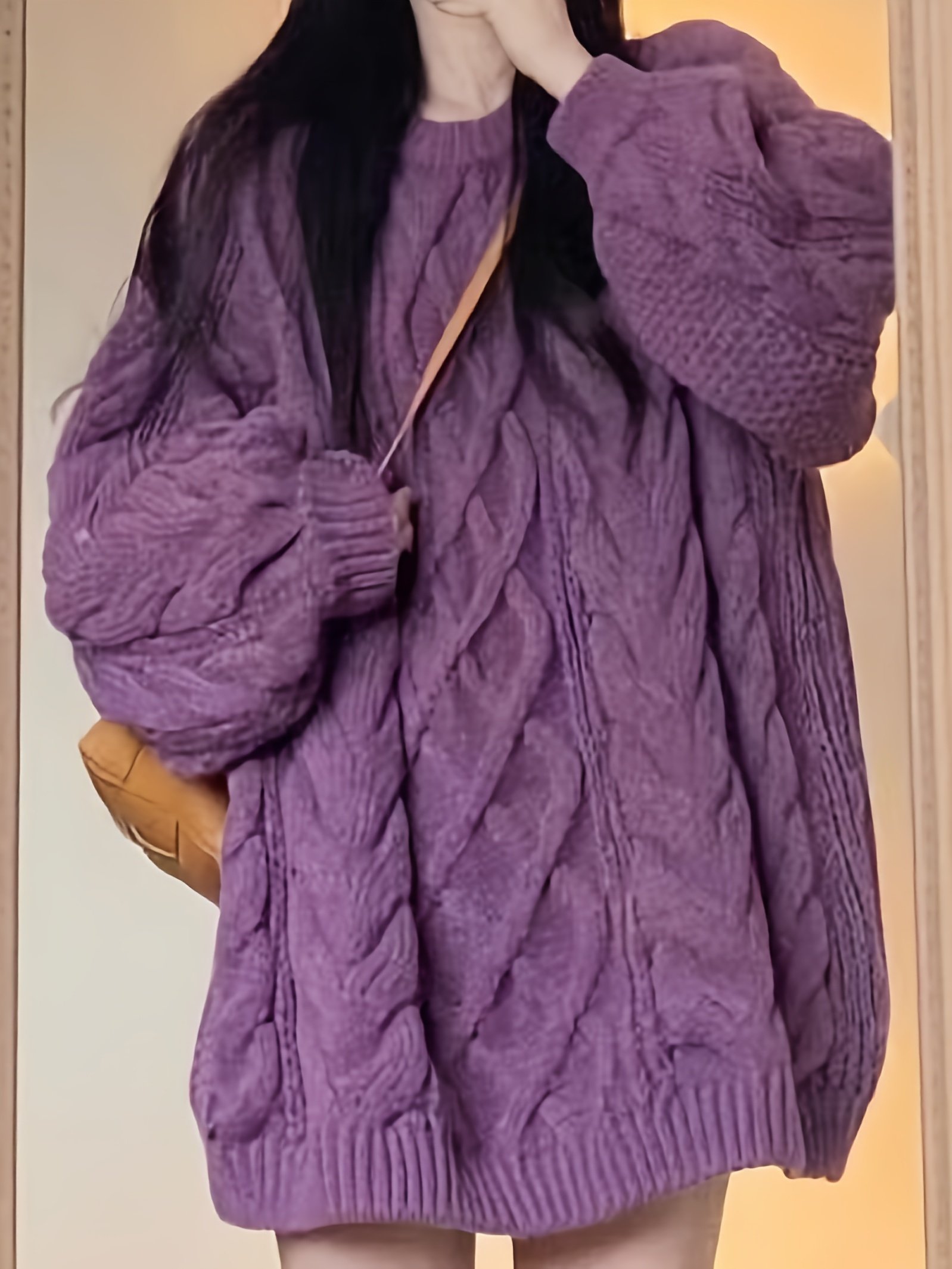 استعدي لاستقبال مواسم البرد بأناقة لا تضاهى ودفء لا يُقاوم مع سويتر الكابل الواسع بلون اللافندر الساحر. قطعة أساسية في خزانتكِ تجمع بين الرقي والراحة المطلقة، مصممة لتمنحكِ إطلالة عصرية ومريحة في كل الأوقات، سواء كانت لنزهة صباحية أو أمسية دافئة. دعي هذا السويتر يكون رفيقكِ المثالي الذي يضفي لمسة من الأنوثة والدفء على إطلالتكِ.