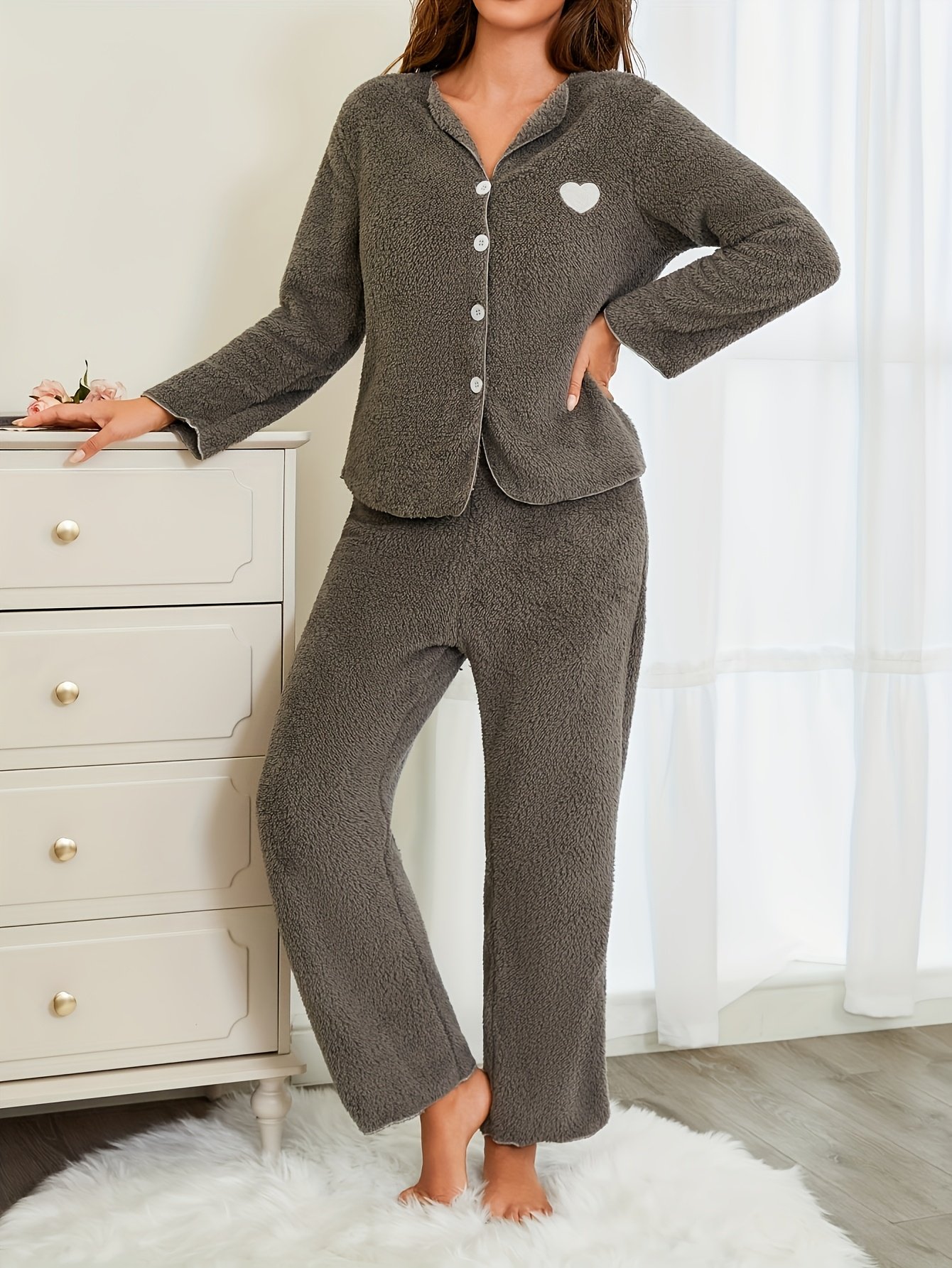 - أناقة عصرية تجمع بين الرقي والراحة: بتصميمه الكلاسيكي الأنيق وأزراره الأمامية وياقته القلابة، يمنحكِ هذا الطقم إطلالة كاجوال راقية تناسب كل أوقاتك، سواء في منزلك أو أثناء خروجاتك اليومية المريحة.