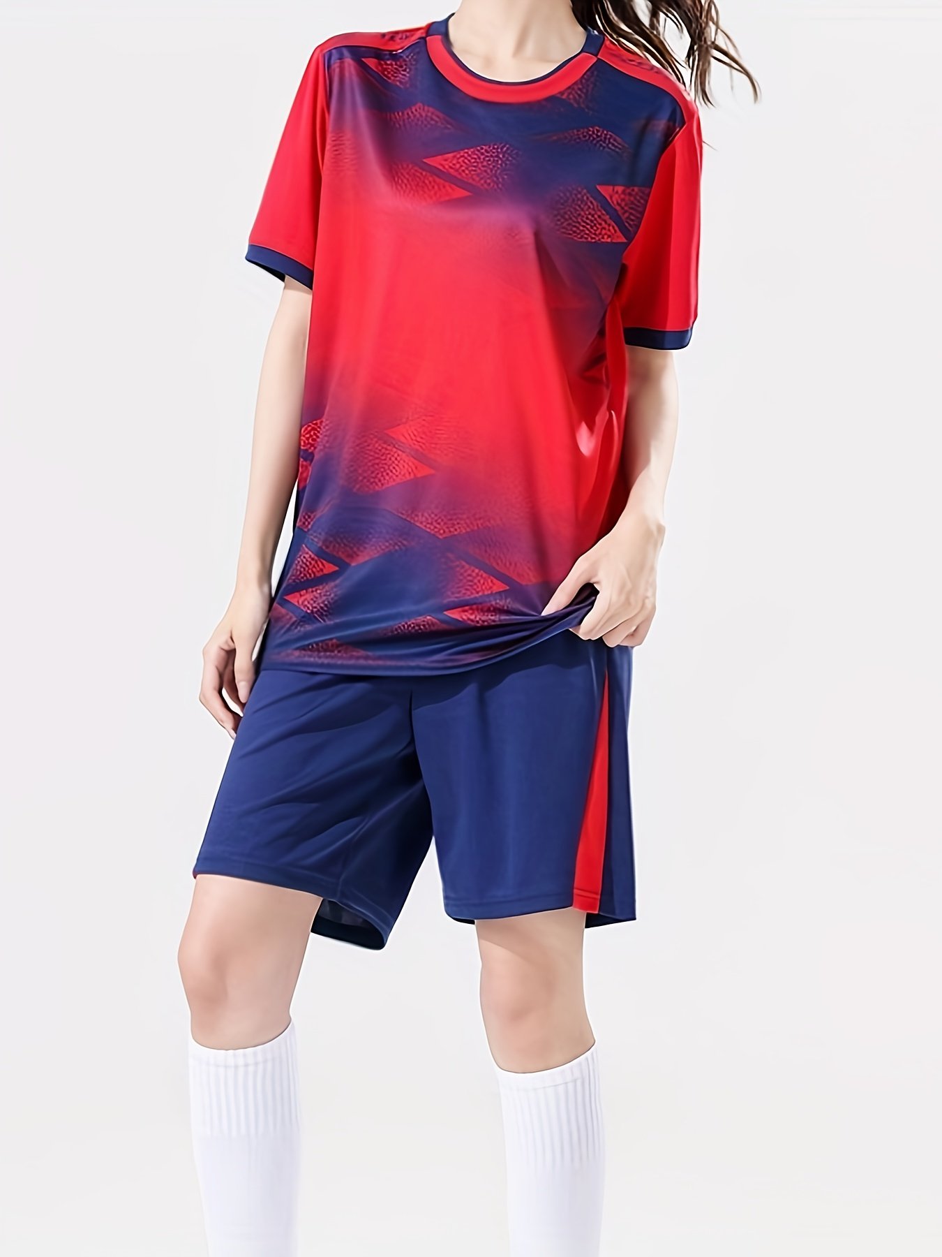 - تصميم هندسي فريد: يجمع بين كتل الألوان الجريئة والنمط الهندسي العصري ليمنحك إطلالة رياضية لا تُنسى ومواكبة للموضة.