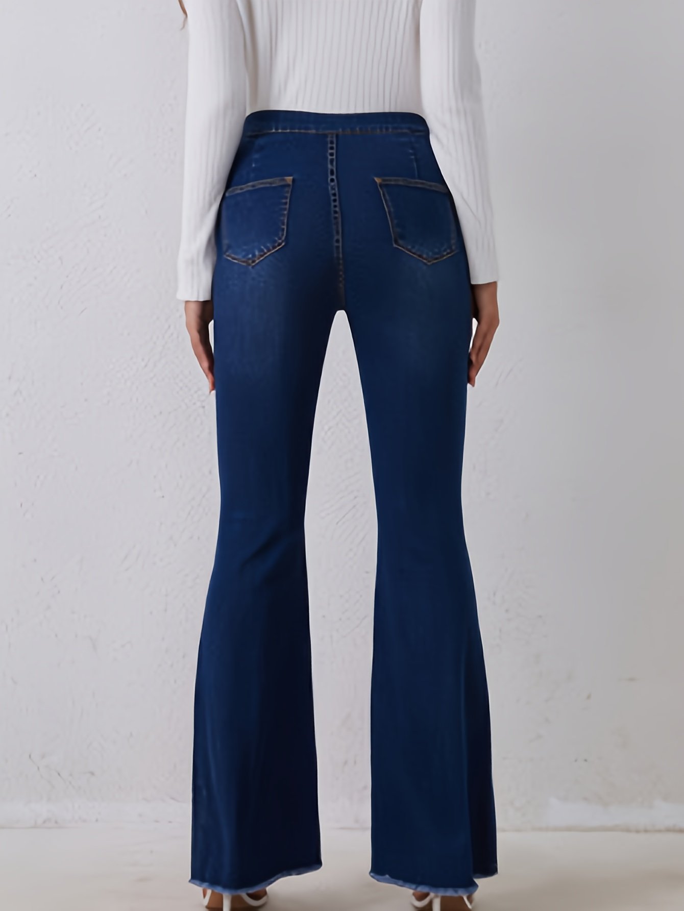 - قصة خصر عالٍ وجذابة: يتميز بتصميم خصر عالٍ يبرز جمال قوامك ويمنحك إطلالة أنثوية أنيقة، مع قصة ضيقة من الأعلى وتتسع تدريجياً لتشكل “فلير ليغ” عصرياً.