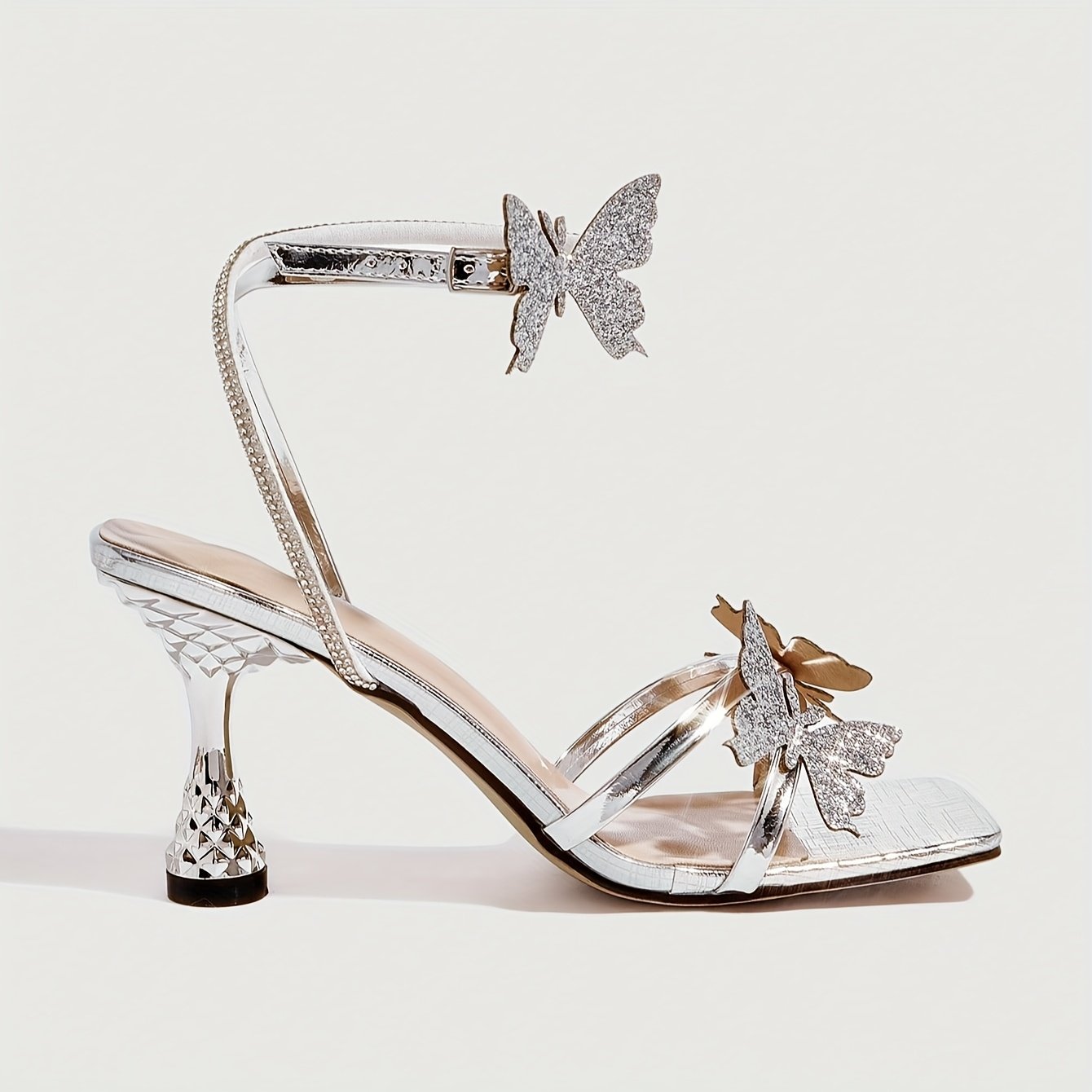 استعدي لتألق لا مثيل له مع صندل الكعب العالي الفضي المصمم خصيصاً ليبرز أنوثتكِ ويزيد من سحركِ. لكل امرأة تسعى للتميز والرقي وبصمة فريدة تتركها في كل خطوة، هذا الصندل هو اختياركِ الأمثل لإطلالة مفعمة بالجاذبية والفخامة في المناسبات الخاصة والسهرات.