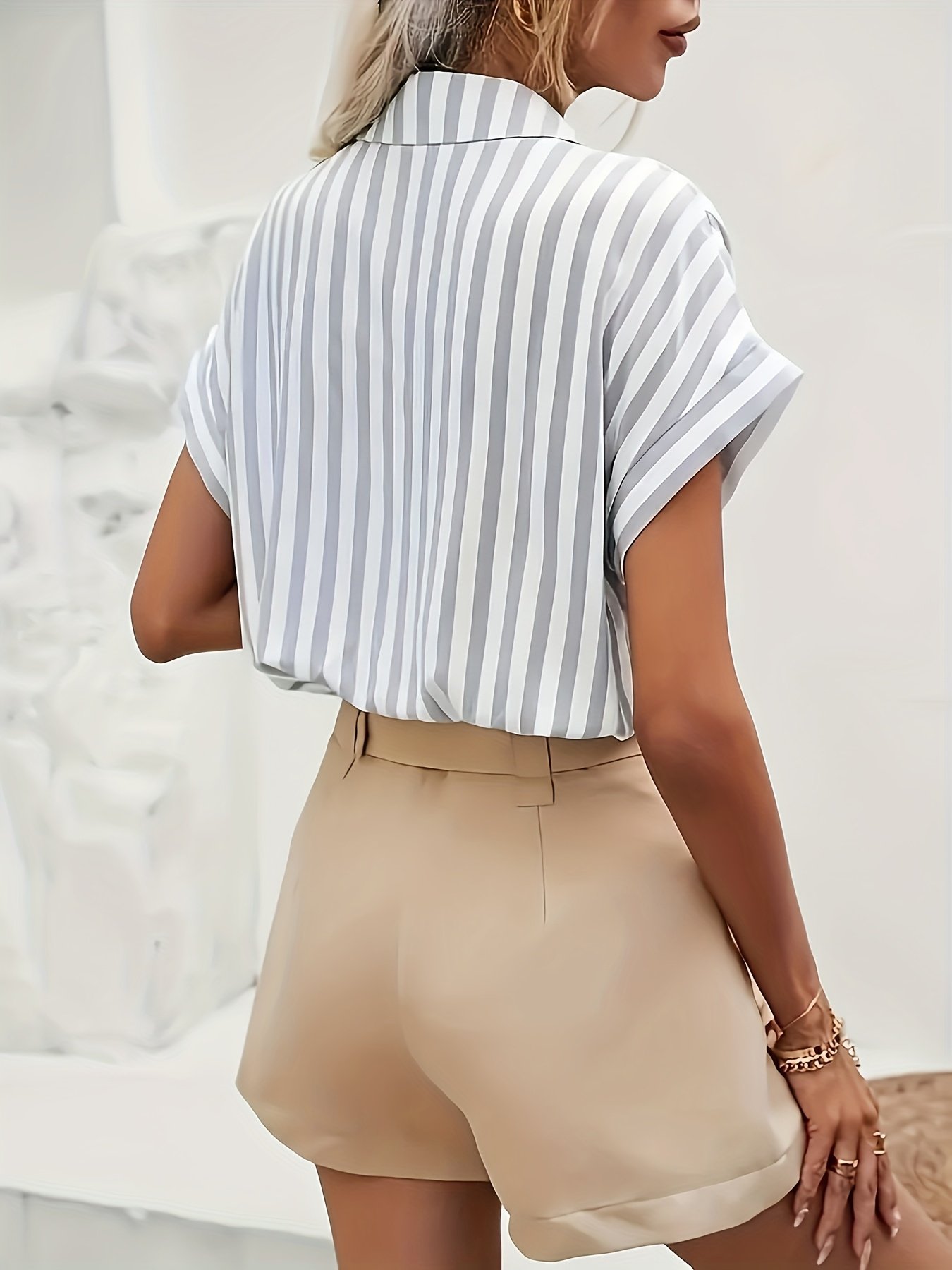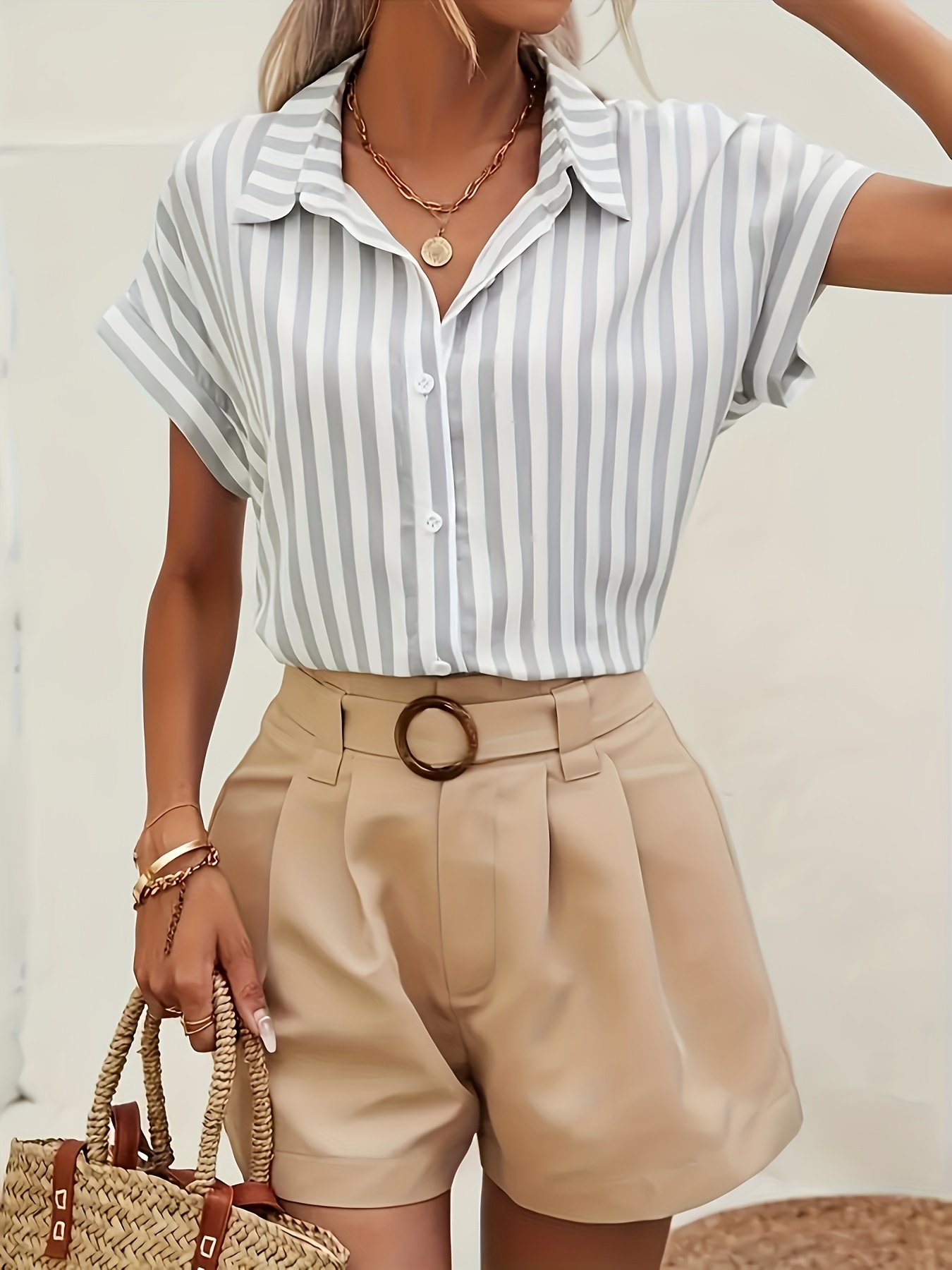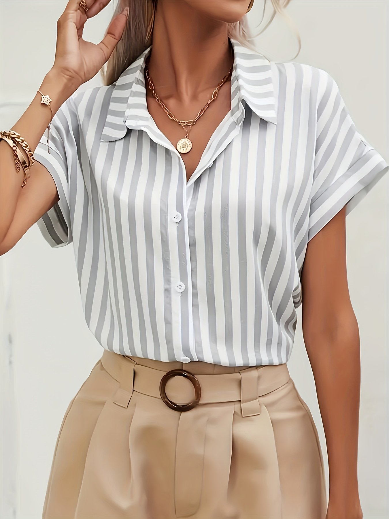 استعدي لاستقبال مواسم الربيع والصيف بأناقة لا مثيل لها مع بلوزتنا المخططة الجديدة! تصميم يجمع بين العصرية والراحة، لتكوني محط الأنظار أينما ذهبتِ. إنها القطعة الأساسية التي ستضفي لمسة من الأناقة الراقية على إطلالتكِ اليومية أو لمناسباتكِ الخاصة.