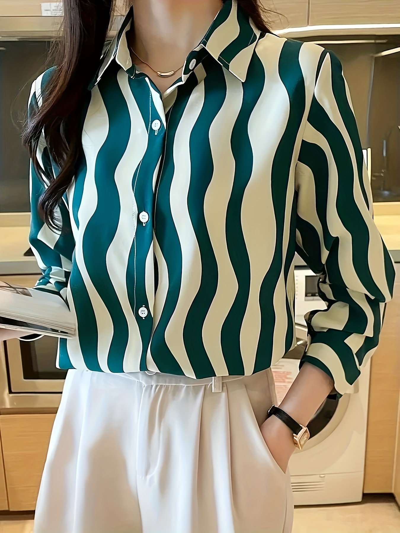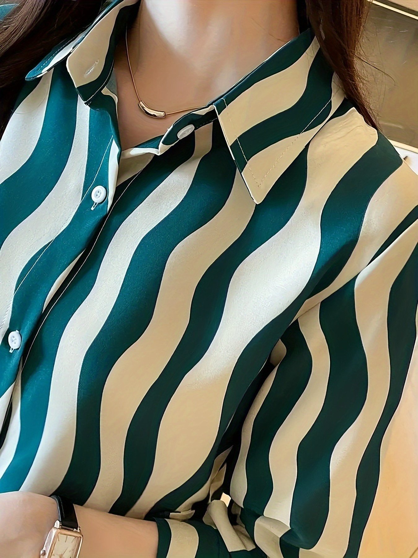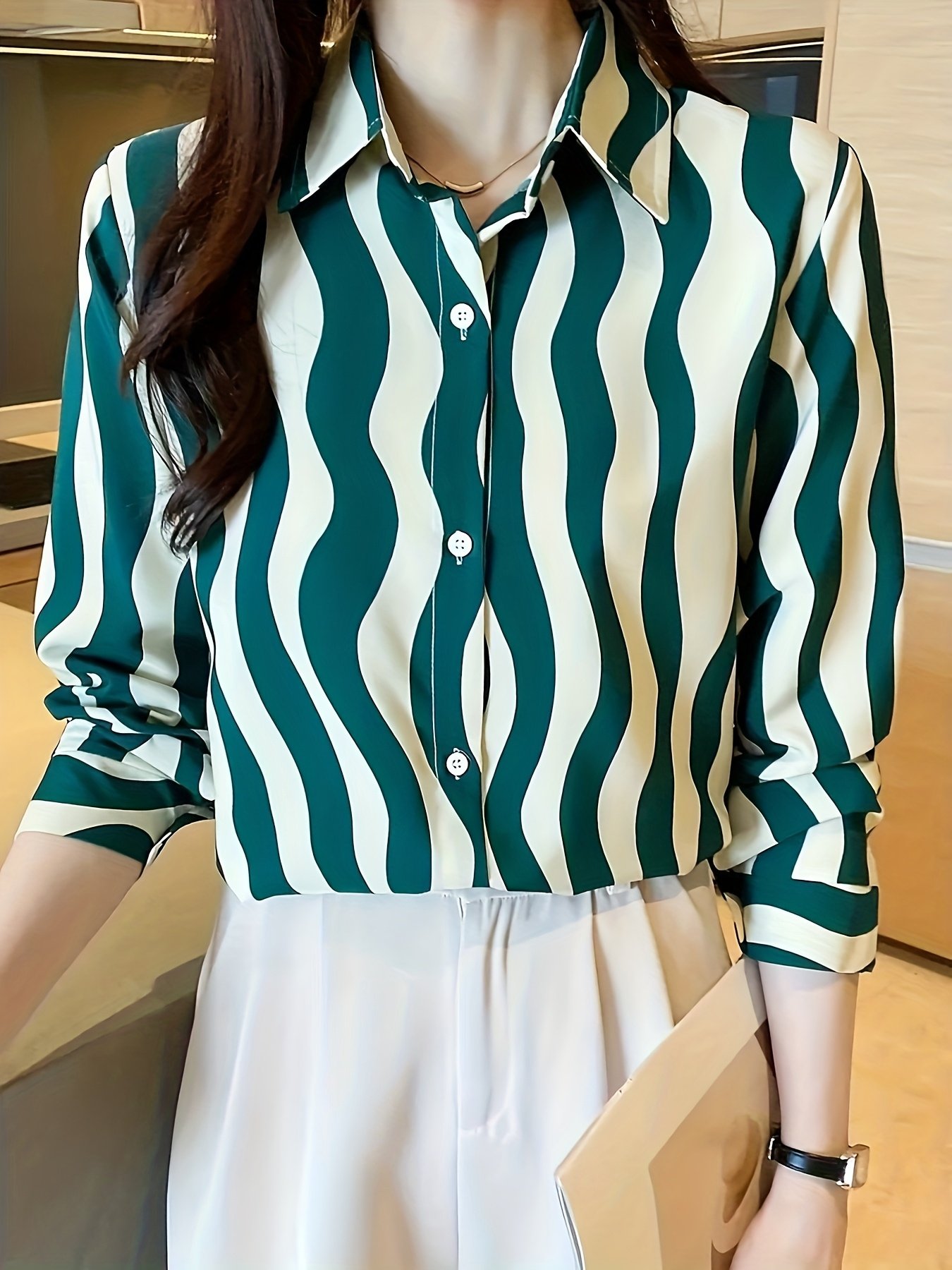 - قصة أنيقة وتفاصيل راقية: يأتي بتصميم قميص كلاسيكي مع ياقة قلابة (لابل) وأكمام طويلة مزودة بتفاصيل أصفاد أنيقة، مما يضفي لمسة احترافية وجذابة.