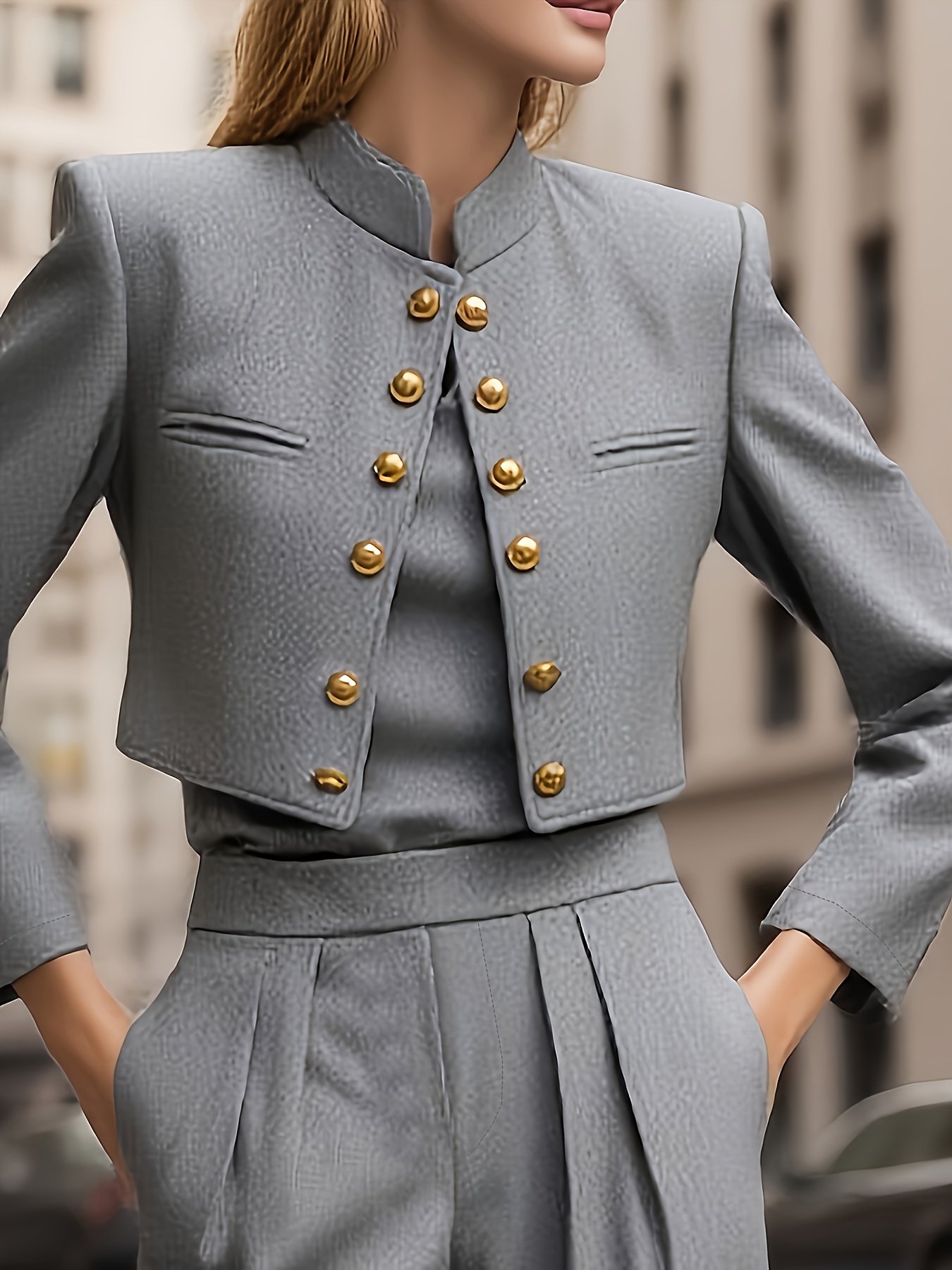 - تفاصيل أزرار راقية: تزيد من أناقة التصميم وتكمل المظهر العام للجاكيت بلمسة كلاسيكية وعصرية في آن واحد.