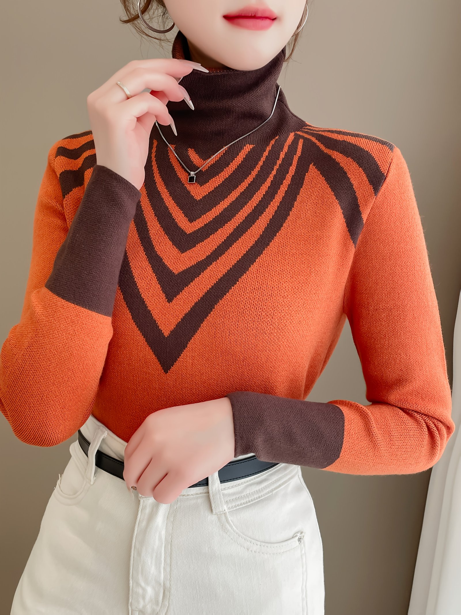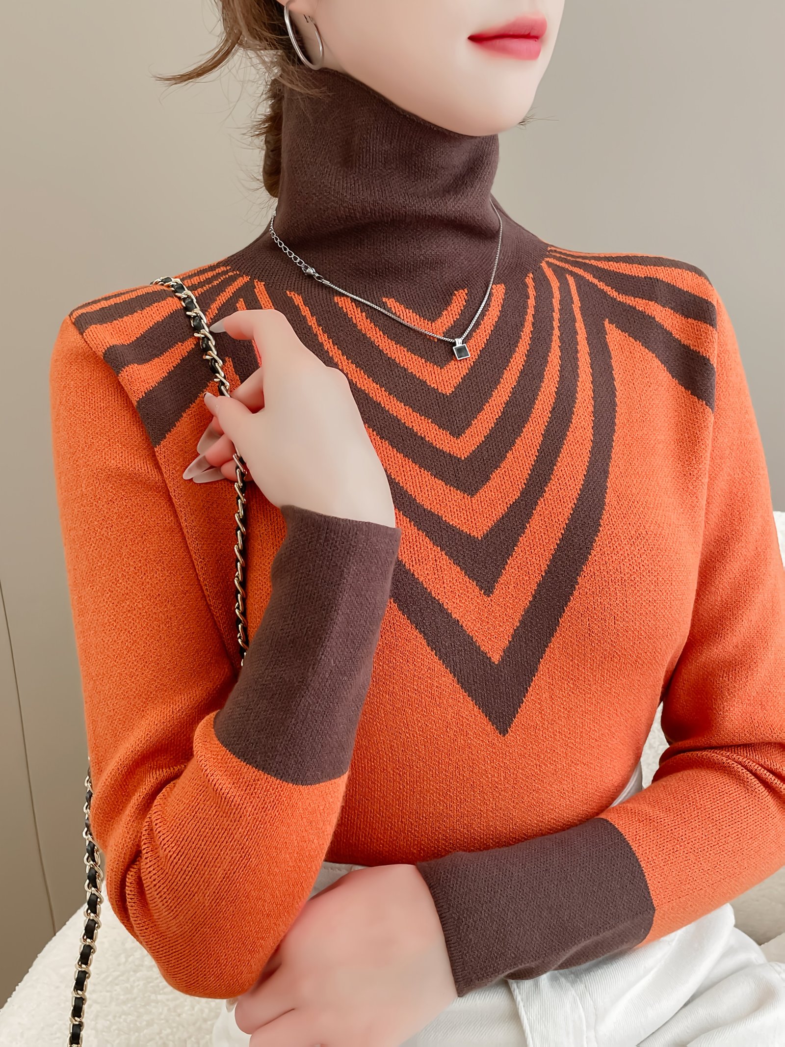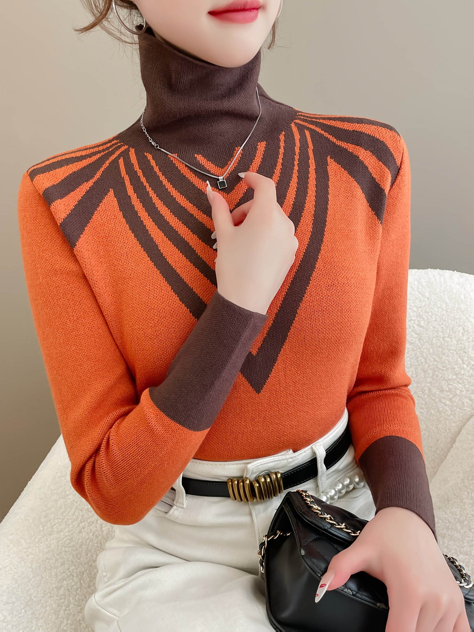 - ياقة عالية للدفء والأناقة: تصميم الياقة العالية لا يوفر لكِ دفئًا إضافيًا حول الرقبة فحسب، بل يضيف لمسة من الرقي والأناقة الكلاسيكية إلى مظهركِ، مما يجعله مثاليًا للأيام الباردة.
