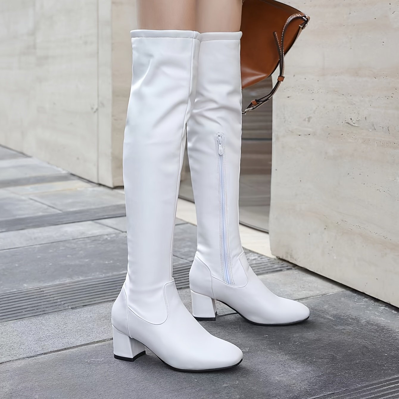 بوت الأناقة الشتوية البيضاء: إطلالة آسرة بكعب عالٍ فوق الركبة!