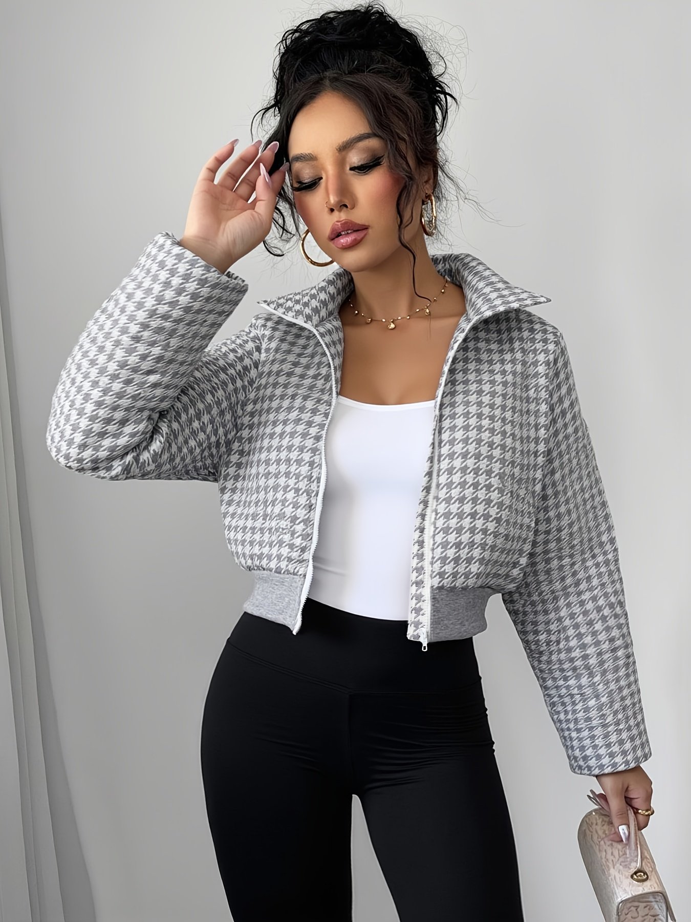 - تصميم عصري وقصير: طول الجاكيت القصير يمنحكِ إطلالة شابة وعصرية، مثالي للتنسيق مع مختلف الأزياء لإبراز قوامكِ بأناقة وتميز.