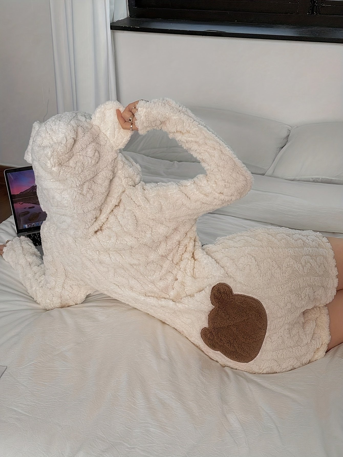 - دفء فاخر وملمس ناعم: مصنوعة بالكامل من قماش البوليستر الناعم المنسوج الذي يمنحكِ دفئًا استثنائيًا وملمسًا لطيفًا على البشرة، لتشعري وكأنكِ محاطة بدب لطيف ومريح.